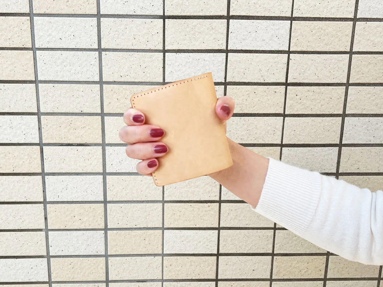 今回制作する二つ折り財布は、既製品よりも小さく設計されているため、ポケットやバッグへの出し入れがとても快適です