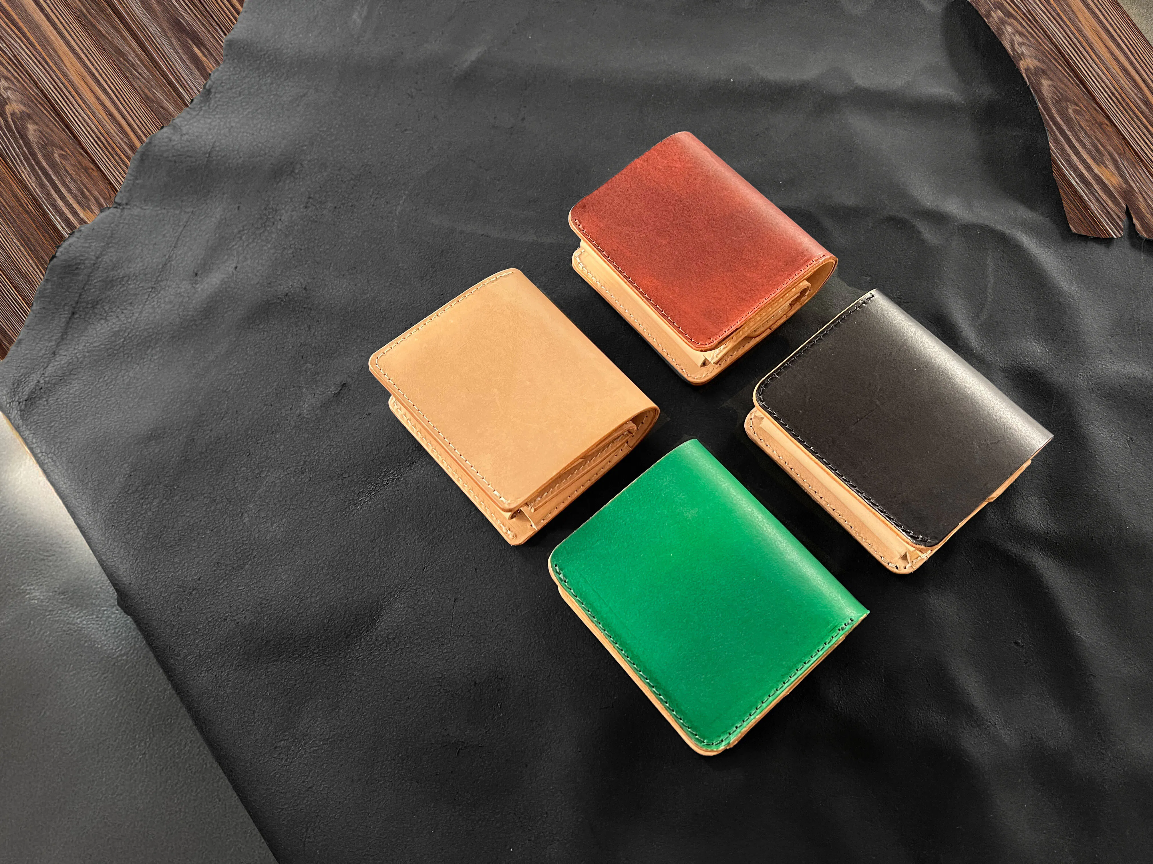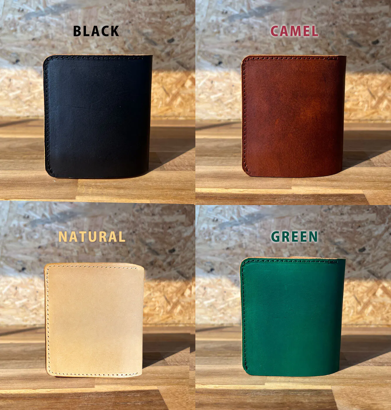 ここに二つ折り財布を4種並べた写真を配置