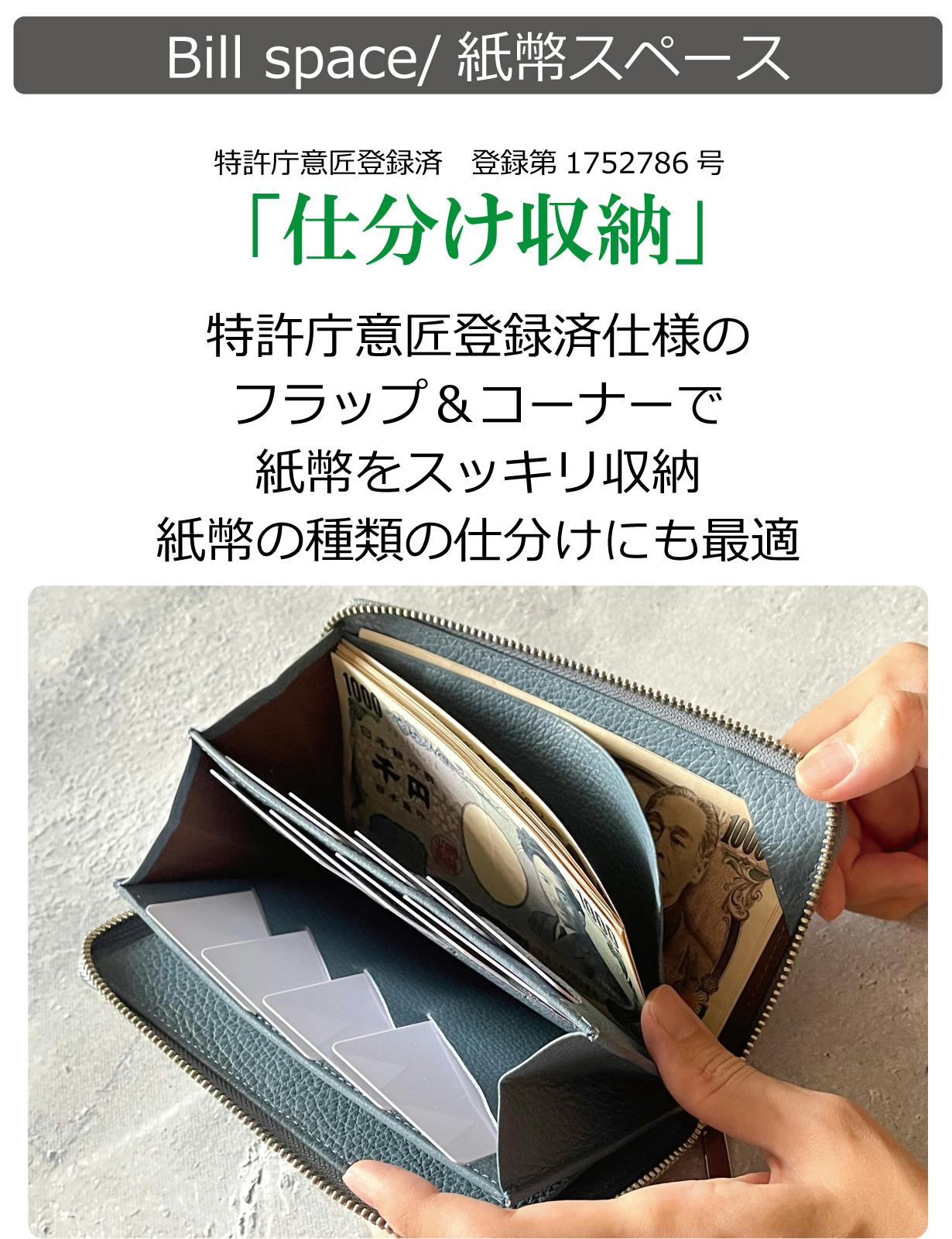 『美しい収納&膨らみづらい』そして、『快適さ』も重視した一級財布職人の独自設計で実現。