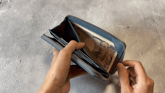 ◇手前側のマチを無くす事で紙幣の出し入れがスムーズに。