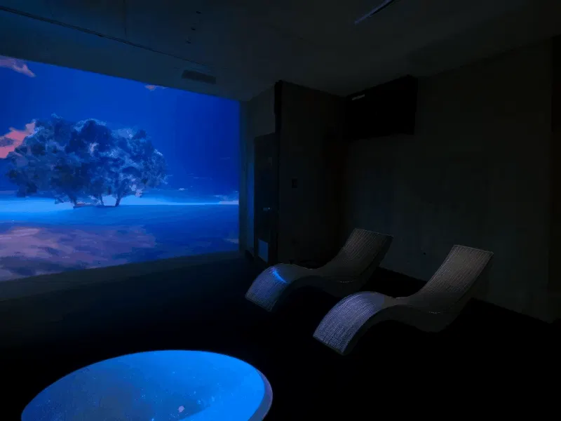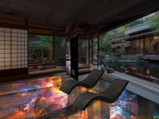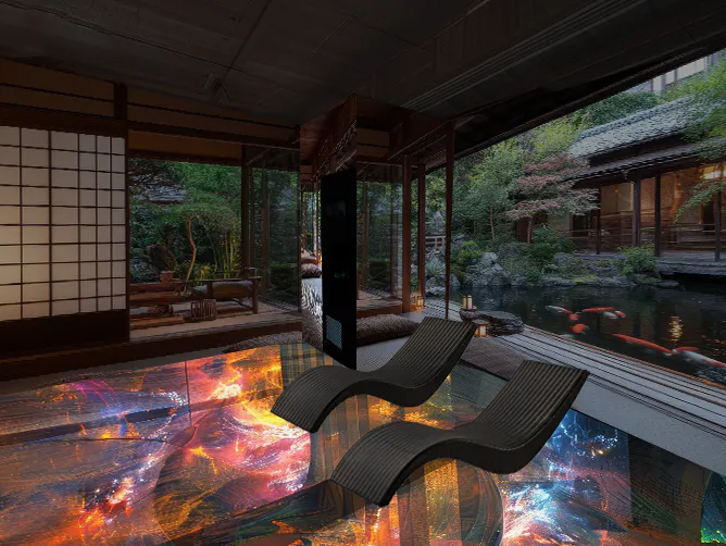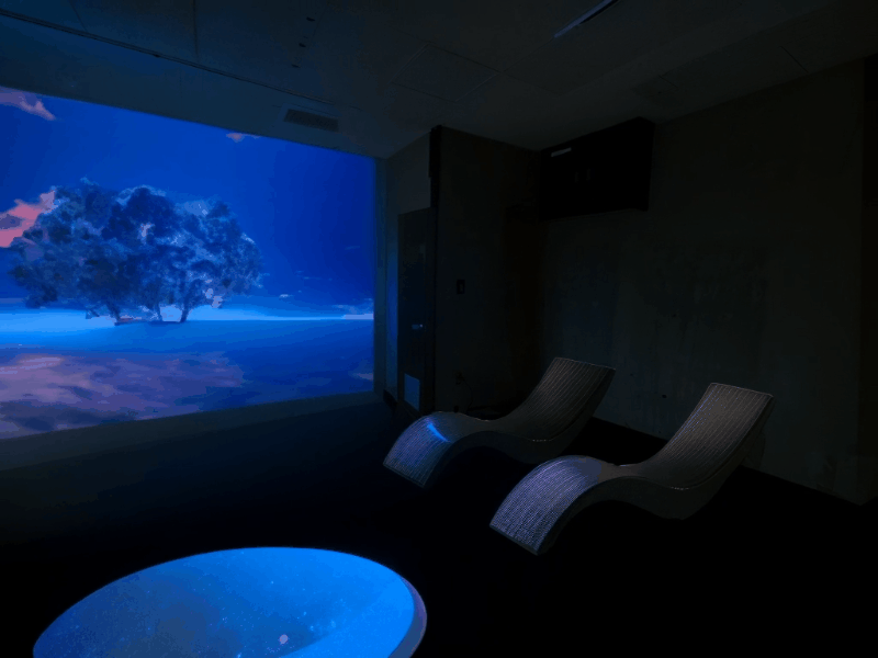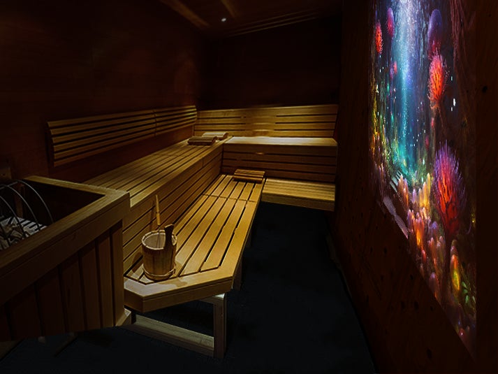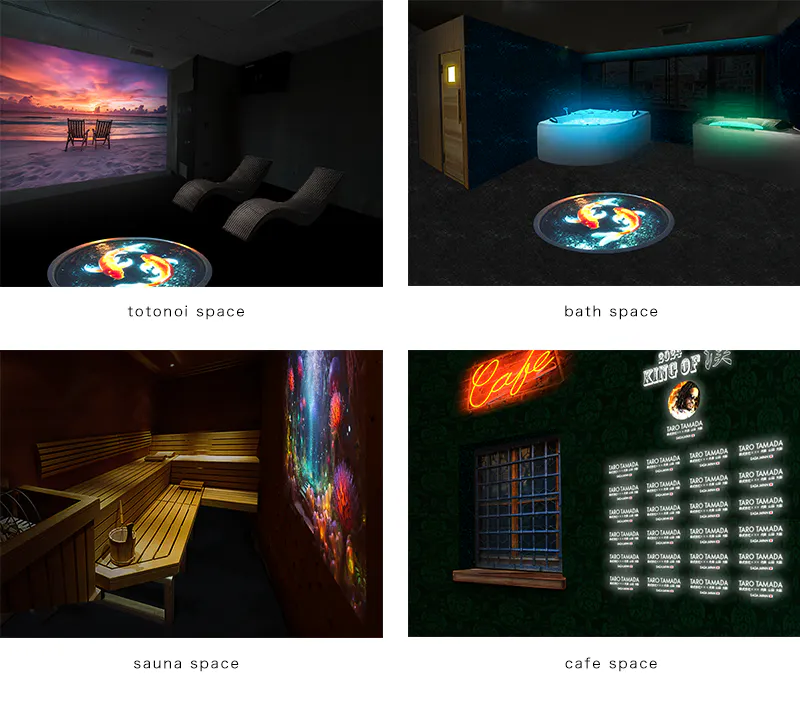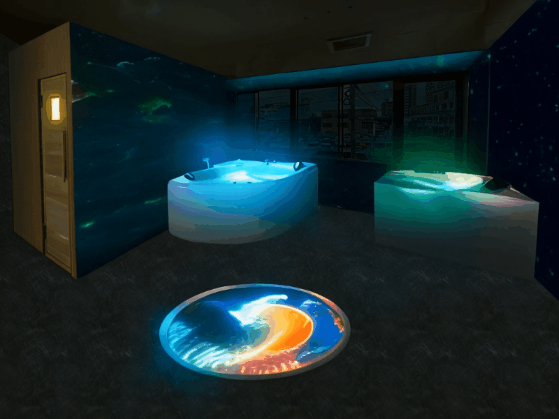 異空間演出においては、映像を使ったプロジェクションマッピングを主に取り入れたいと考えています。始めは、サウナ室内の壁面1面と、ととのいスペースの1面から。