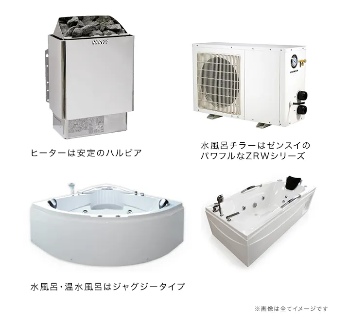 ・チラーはグルシン(10°以下の水風呂)設定可能な外機付きゼンスイZRWシリーズ導入予定