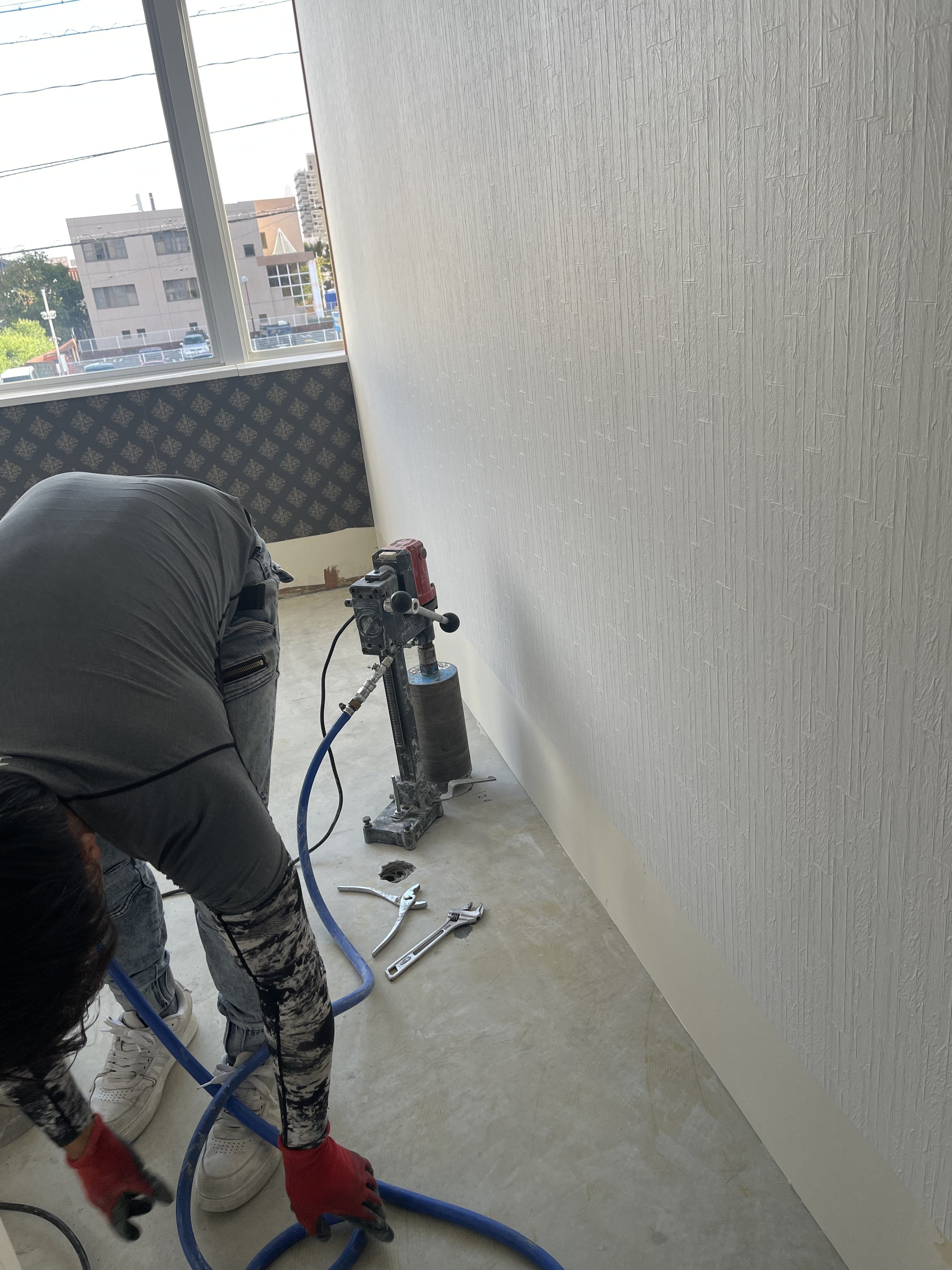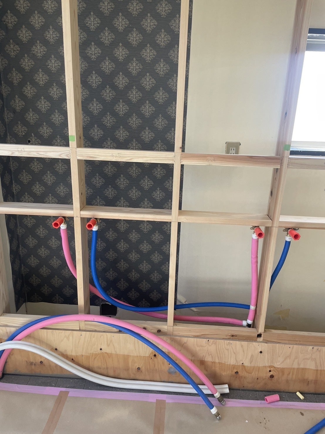 配管完了。後はシャワーに浴槽・チラー設置して完了!