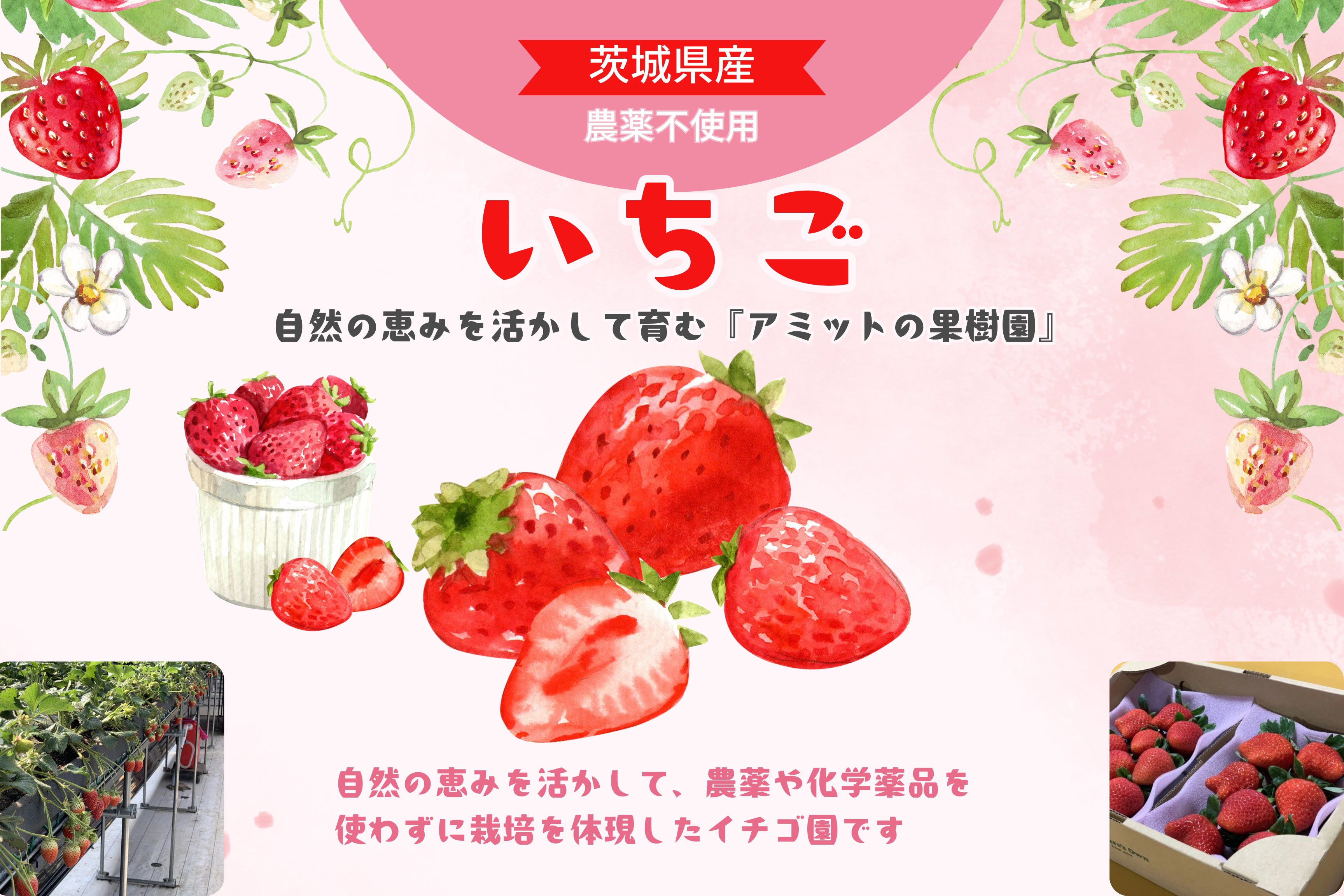 今回のプロジェクトの一番の目玉に何が良いかと皆で考えた時に、お米の原種『朝日』の米麹で甘酒を作ろうとなり、そこに茨城県産のこだわり農薬不使用苺農家アミットさんとコラボレーションした完全に自然の苺甘酒を企画♪
