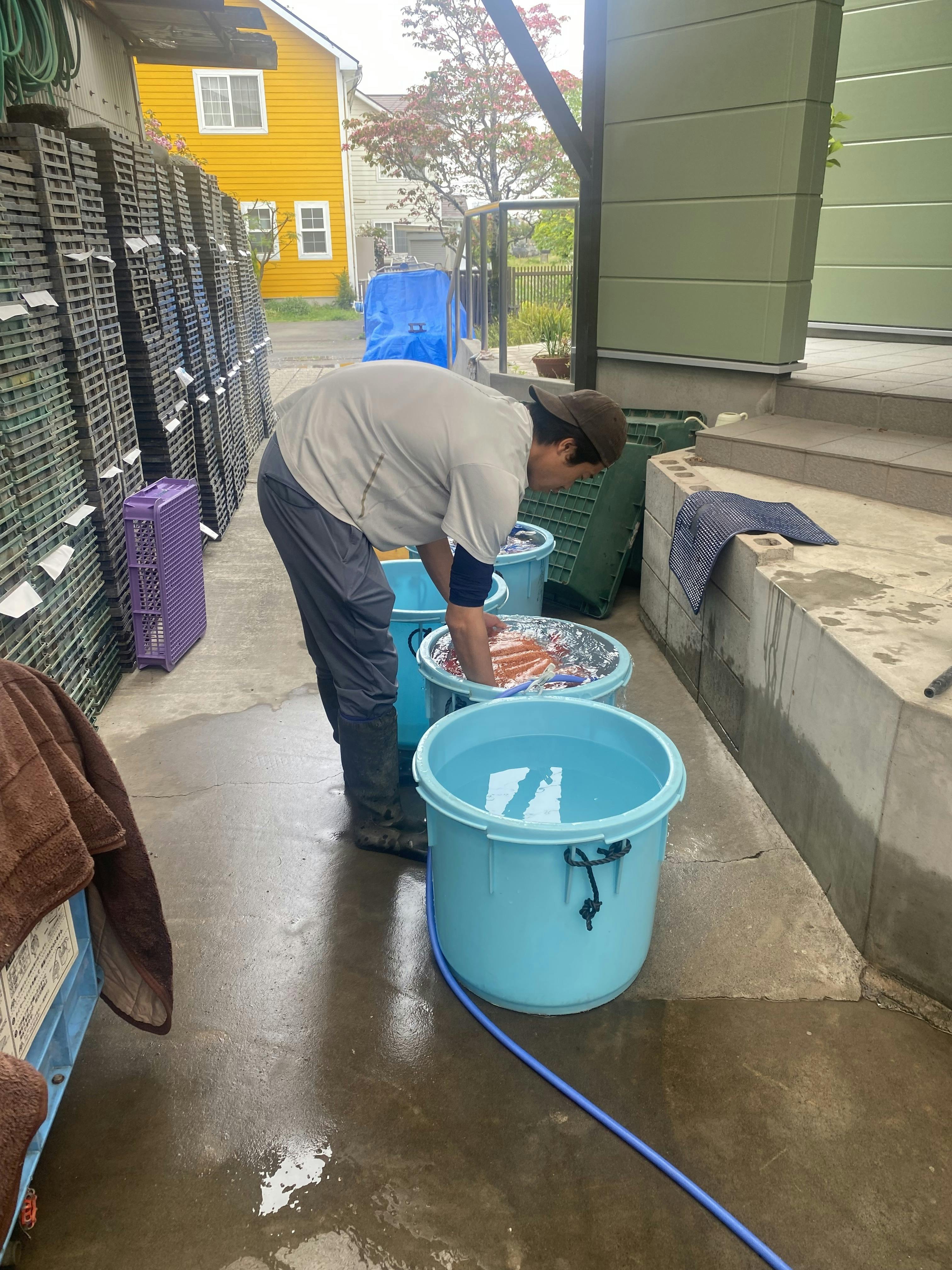 冷たい水に手を入れて行う作業