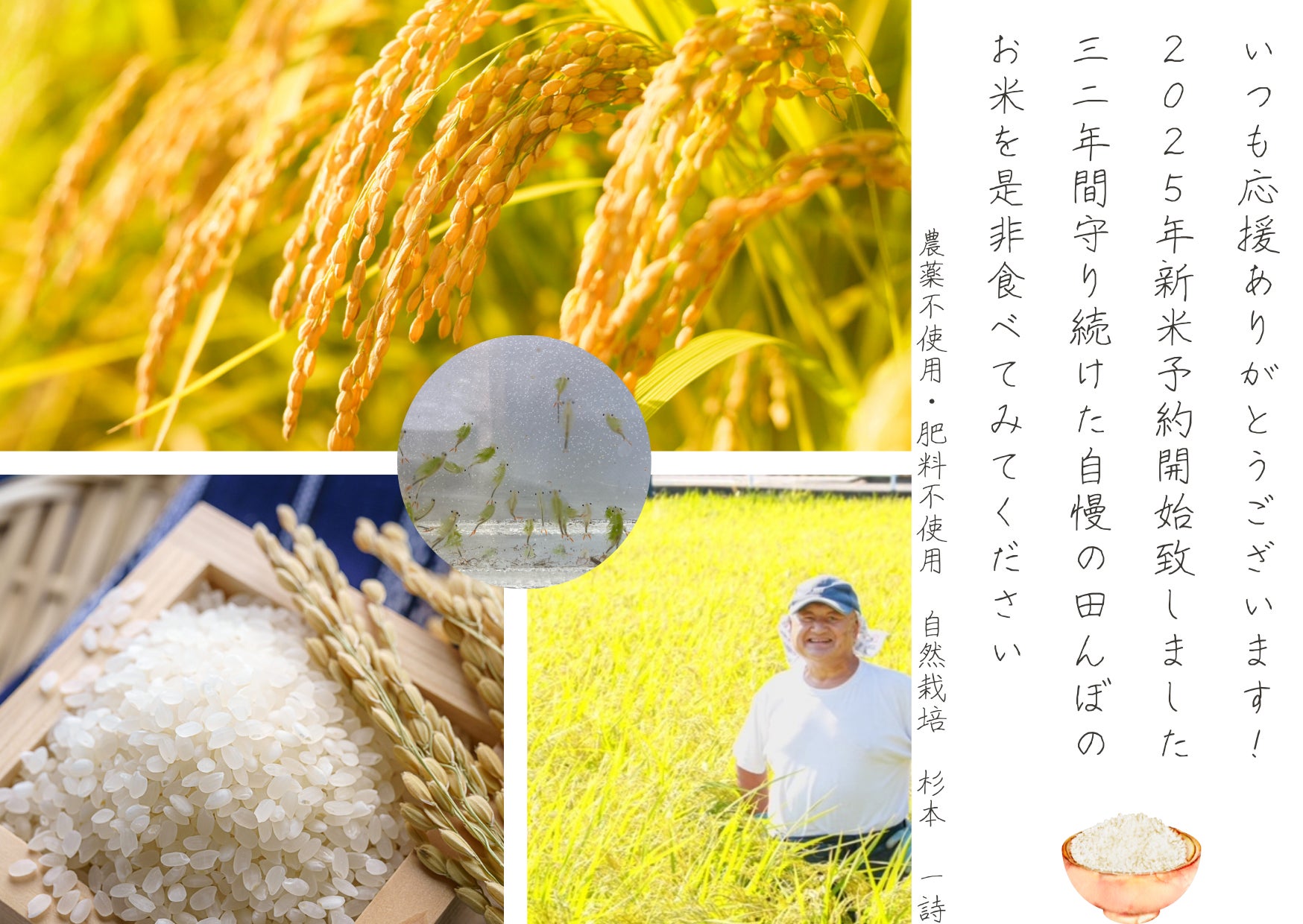 自然栽培歴32年、農薬も肥料も一切使わない本物の自然の力だけで育てた、杉本さんのお米。