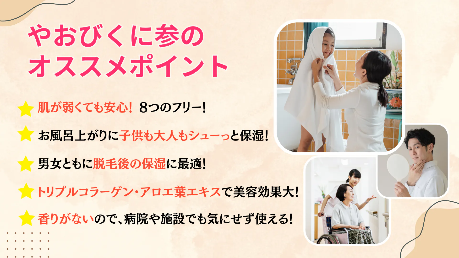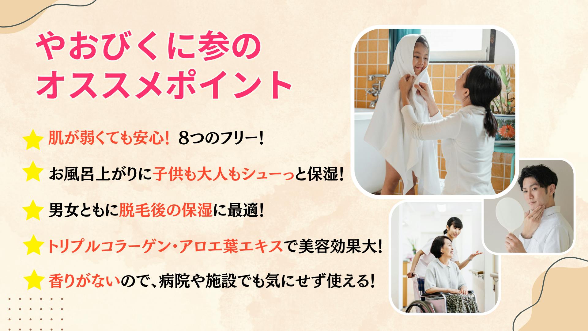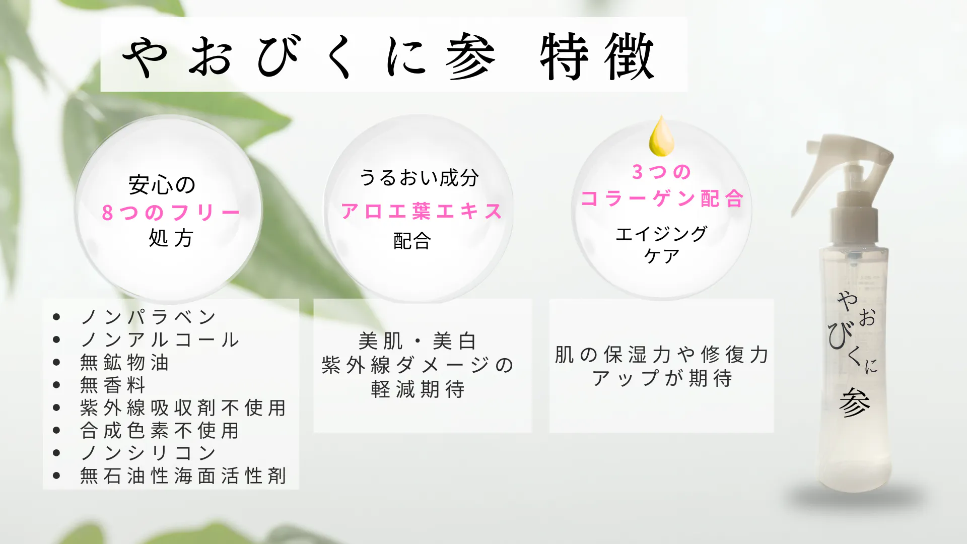 自然の恵みを活かし、肌のケアと環境保護を同時に実現する新しい循環型の商品「やおびくに参」。