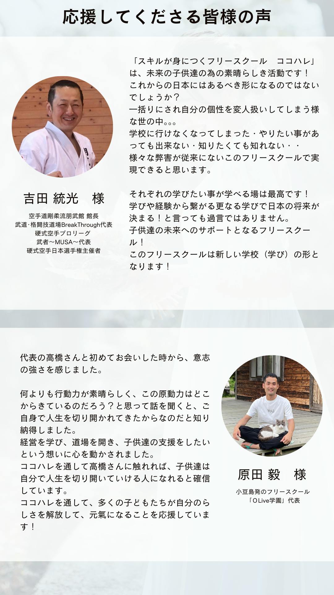 このココハレが実現することで、不登校の子どもたち、未来が不安な子どもたちが安心して過ごせる場所が一つ増えます。