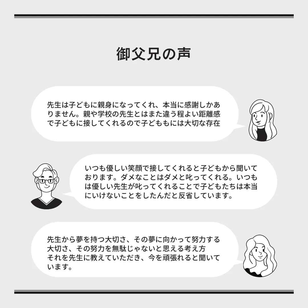 また、武道家でもある代表の道理のお話もでき、道徳としての心の拠り所の役割も果たしたいと考えています。