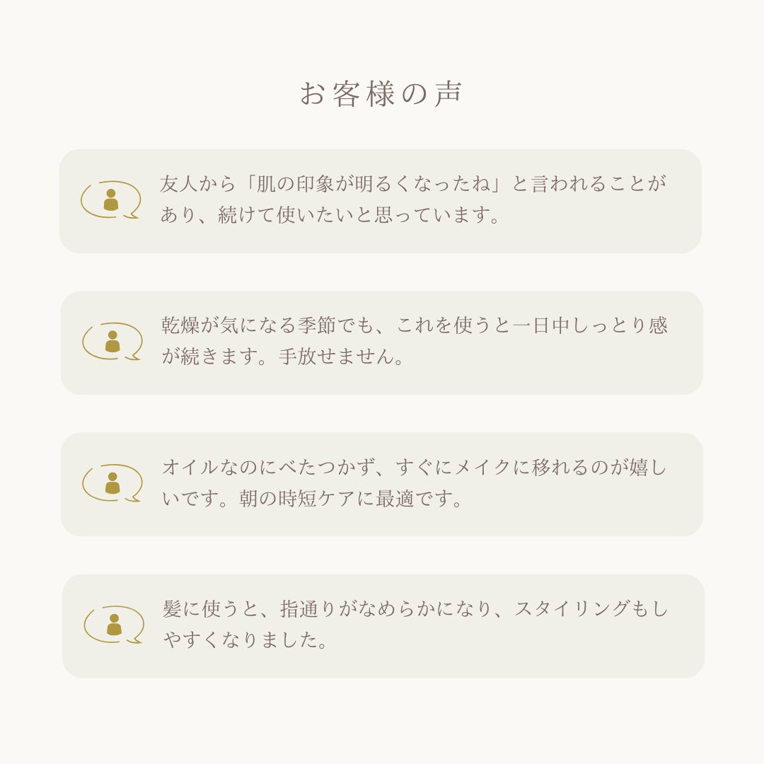 オイルのべとつき感が苦手というお客様のお声を解決するため、テクスチャーのなめらかさを徹底的に研究し、さらさらとした使用感を実現しました。
