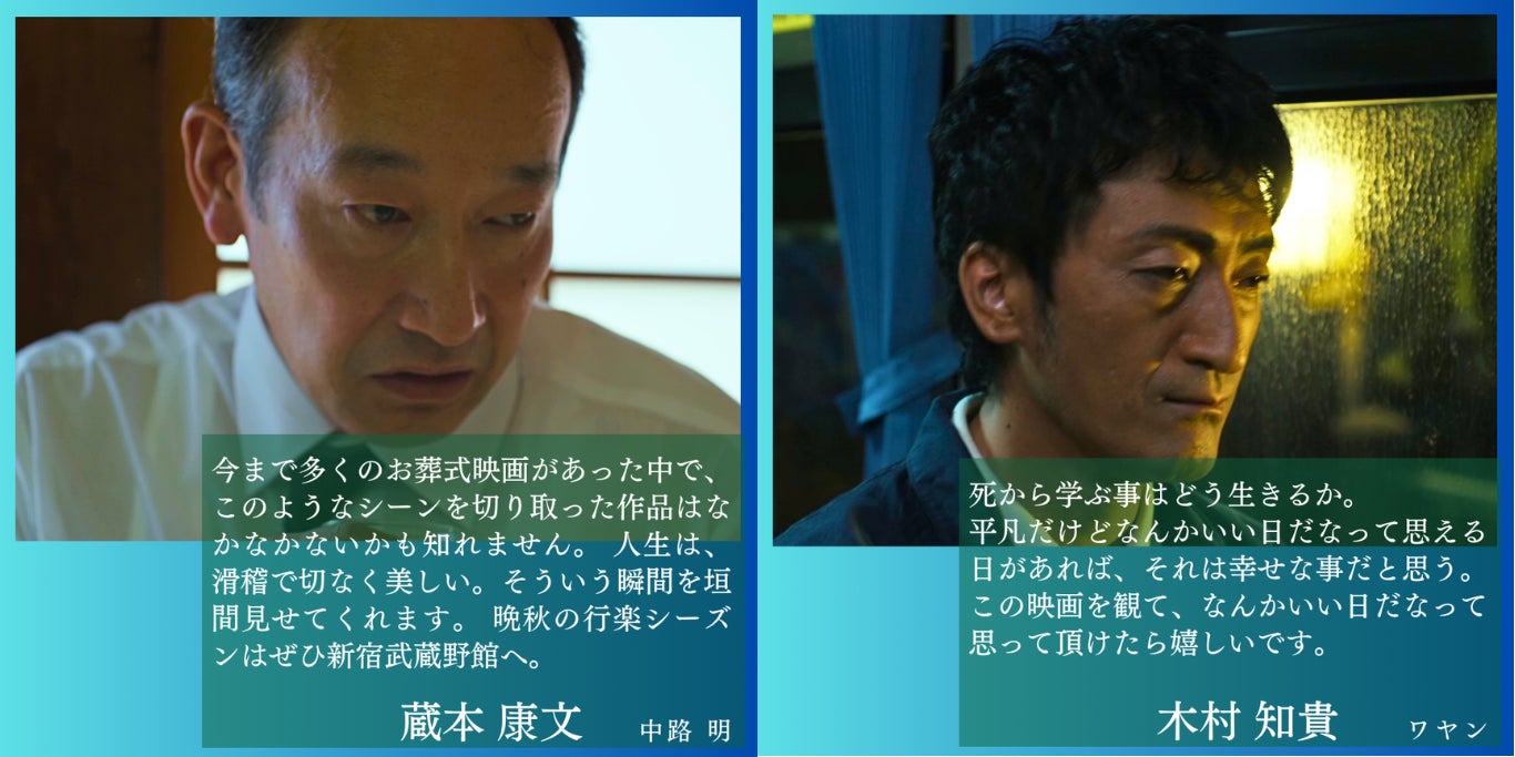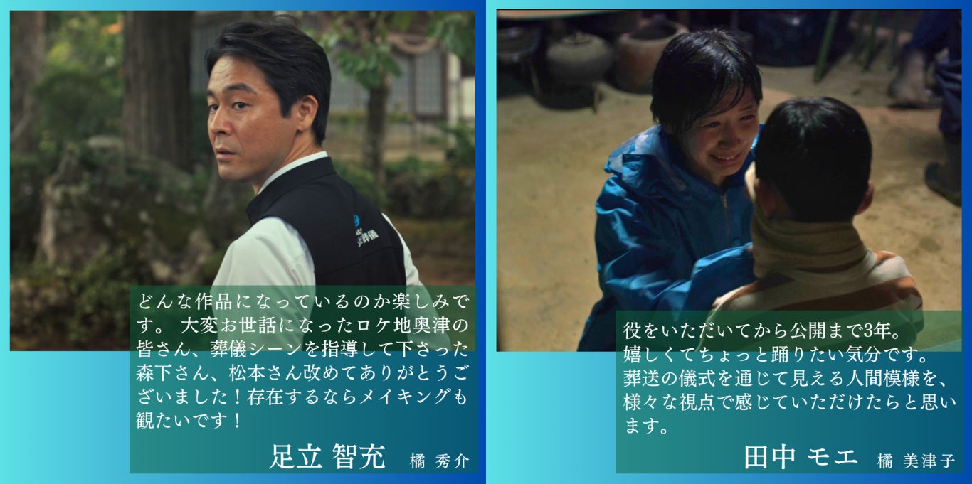 国際共同制作という国籍の枠を超えた、日本・スペイン・シンガポールのプロフェッショナルなスタッフ・クルーたち、1000人を超える応募者からフルキャストオーディションをメインに集められた、素晴らしい実力派のキャストたちとともに、岡山県北・苫田郡鏡野町にある宝樹寺を葬儀のメイン舞台にし、蒜山高原(真庭市)、美作河井駅(津山市)、笠岡諸島・瀬戸内海(笠岡市)、岡山市、茨城県水戸市、笠間市、そして東京と、様々な日本の現代の風景、微かに残る古来よりの葬儀と今を生きる人々の姿を色鮮やかに描いた映画です。