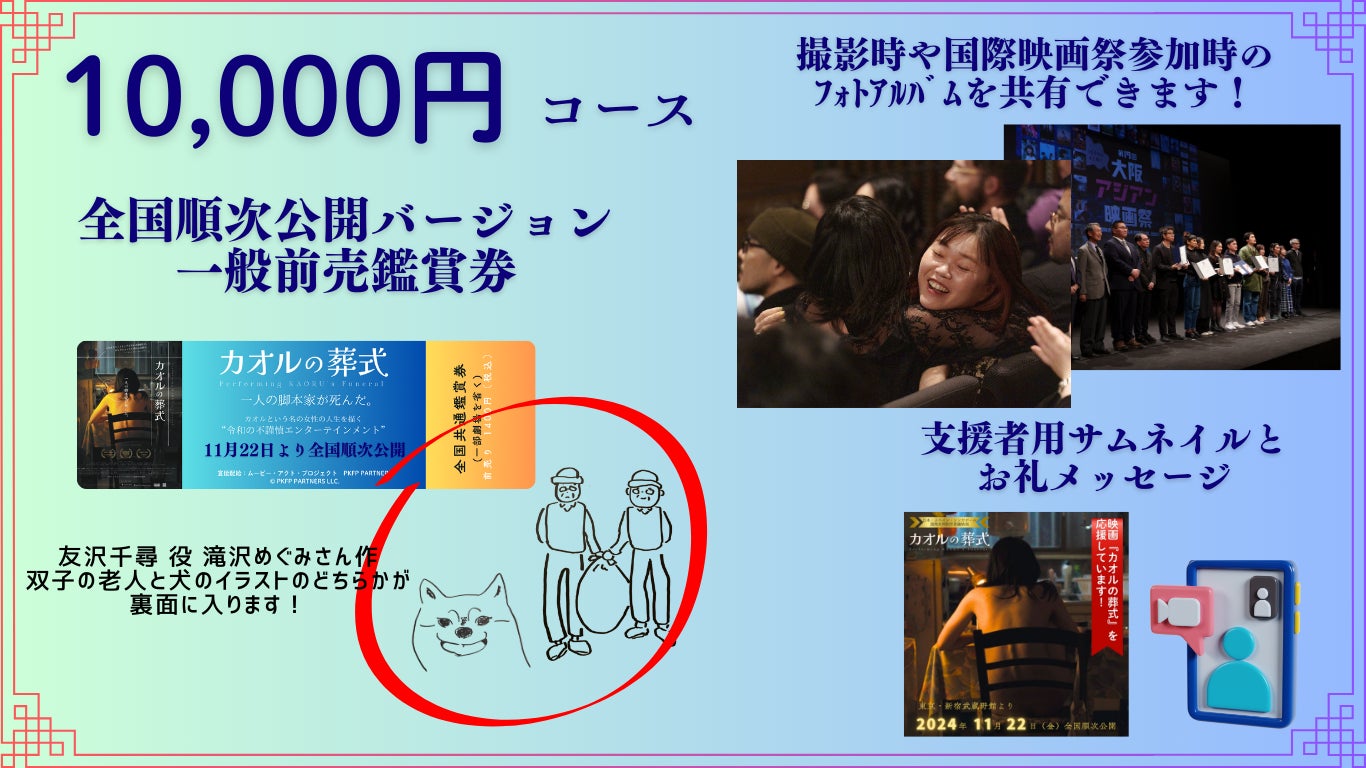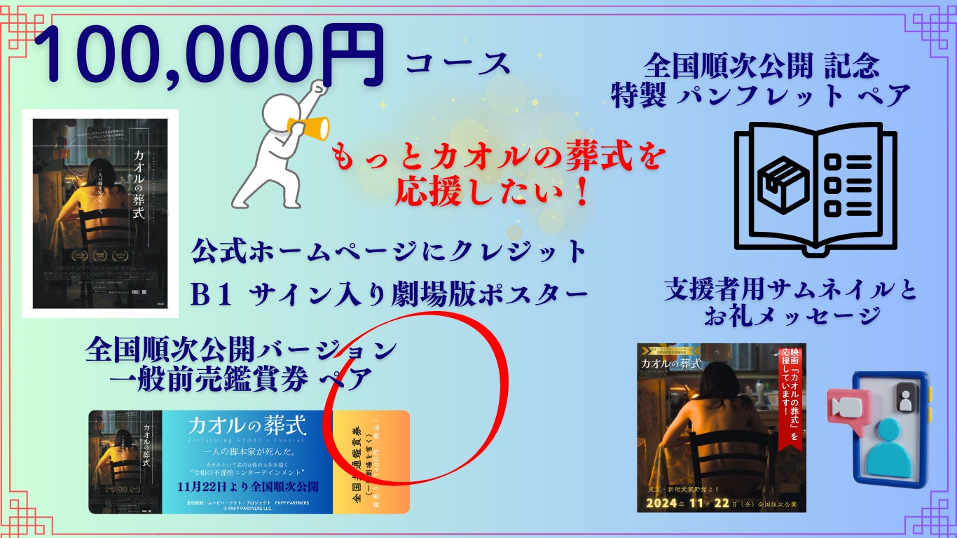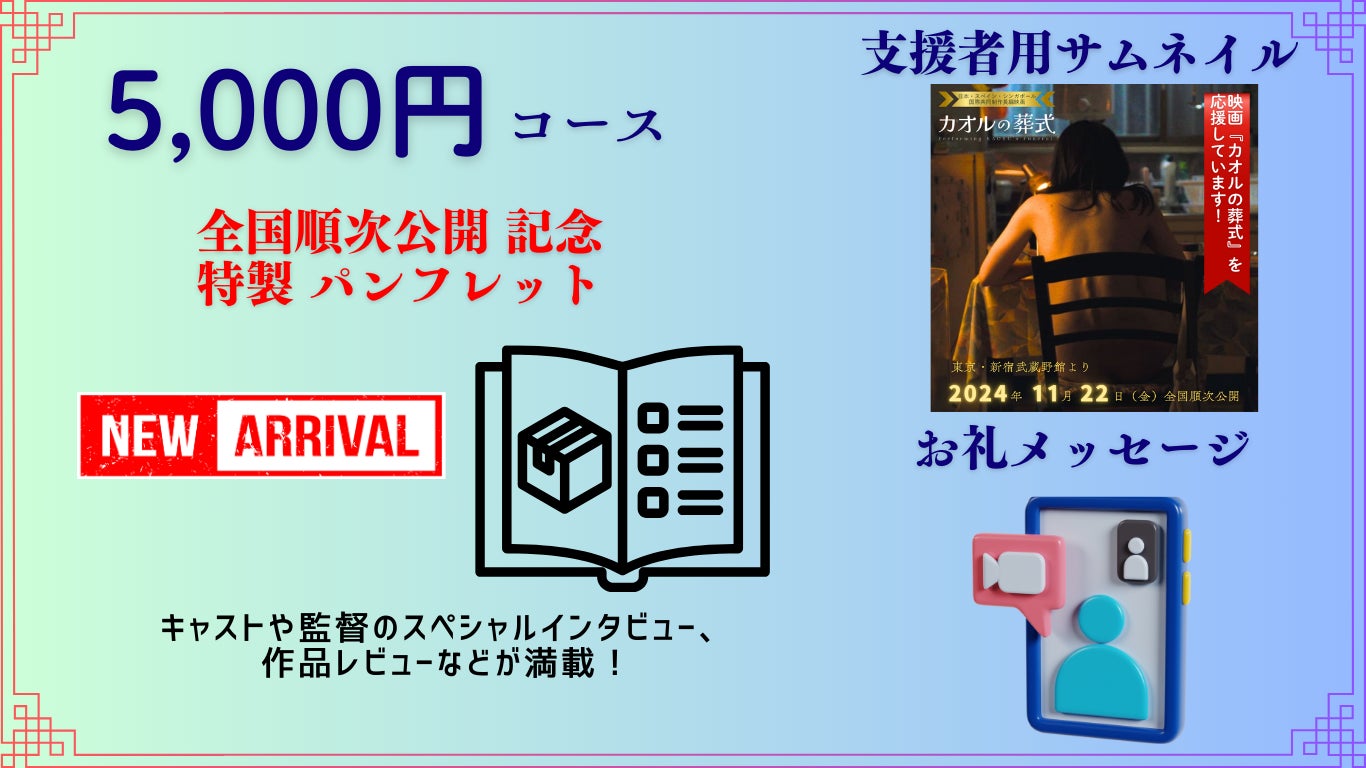 2024年11月から始まる、各地での映画館での全国順次公開は、長丁場となることが想定されます。当然、宣伝配給のための費用が掛かり続けます。本作品を日本中津々浦々の映画館に届け続けるために、クラウドファンディングを立ち上げました。映画『カオルの葬式』に大きな応援をどうぞよろしくお願い致します。