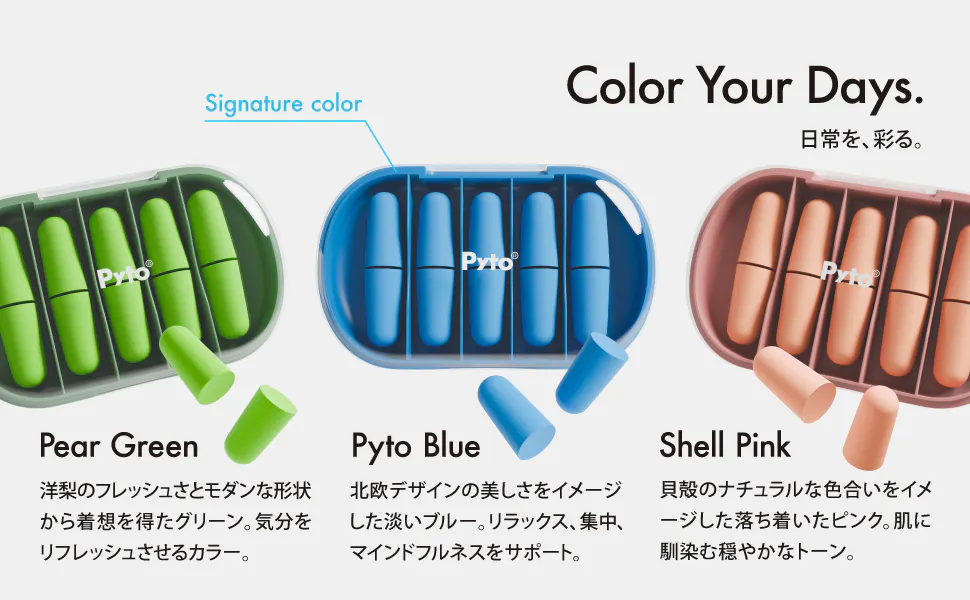 従来の耳栓は、オレンジや黄色などが一般的で、好みの色を選べませんでした。そもそも、『耳栓の色を選ぶ』という発想すら、あまり無かったかもしれません。