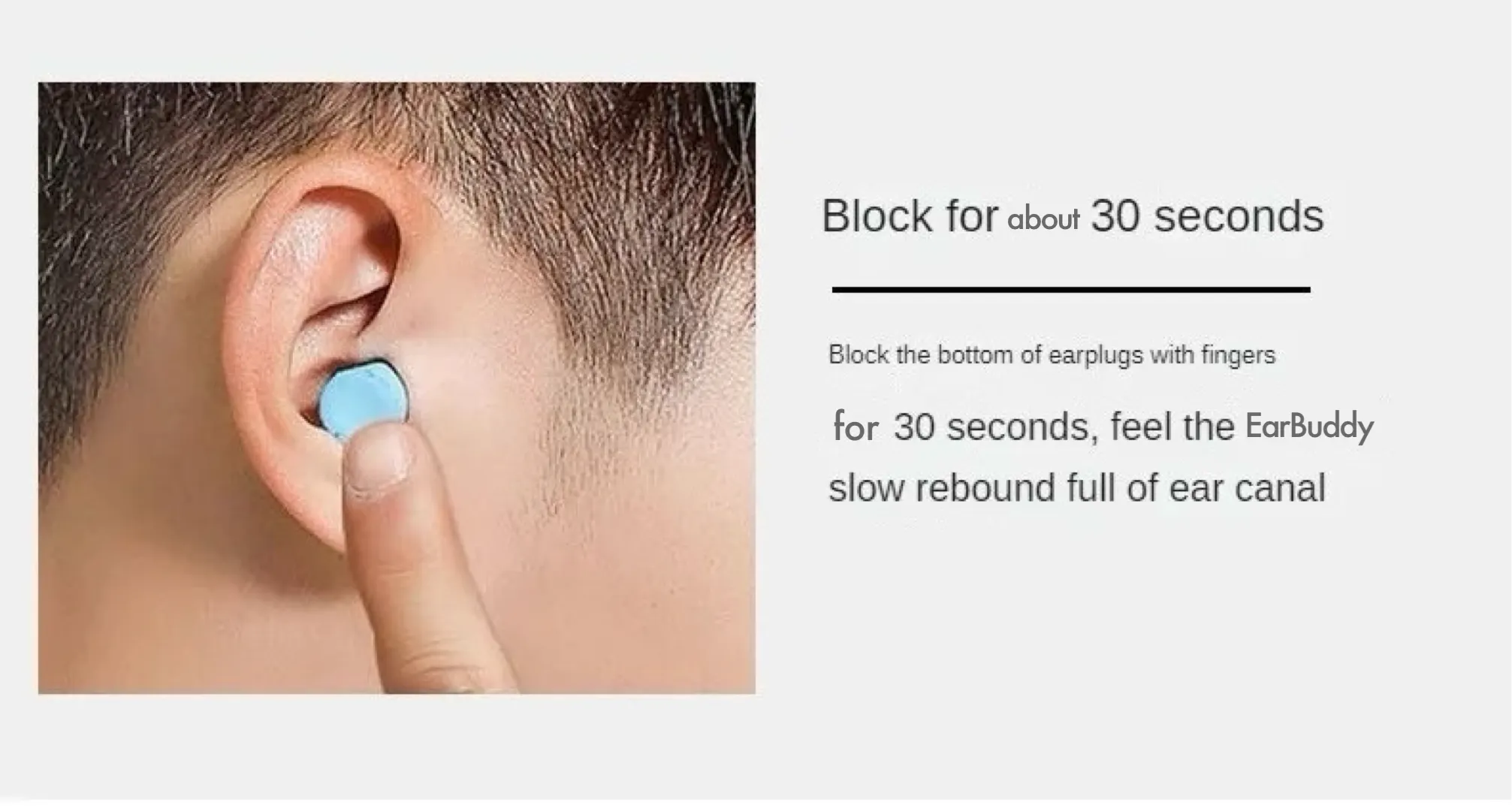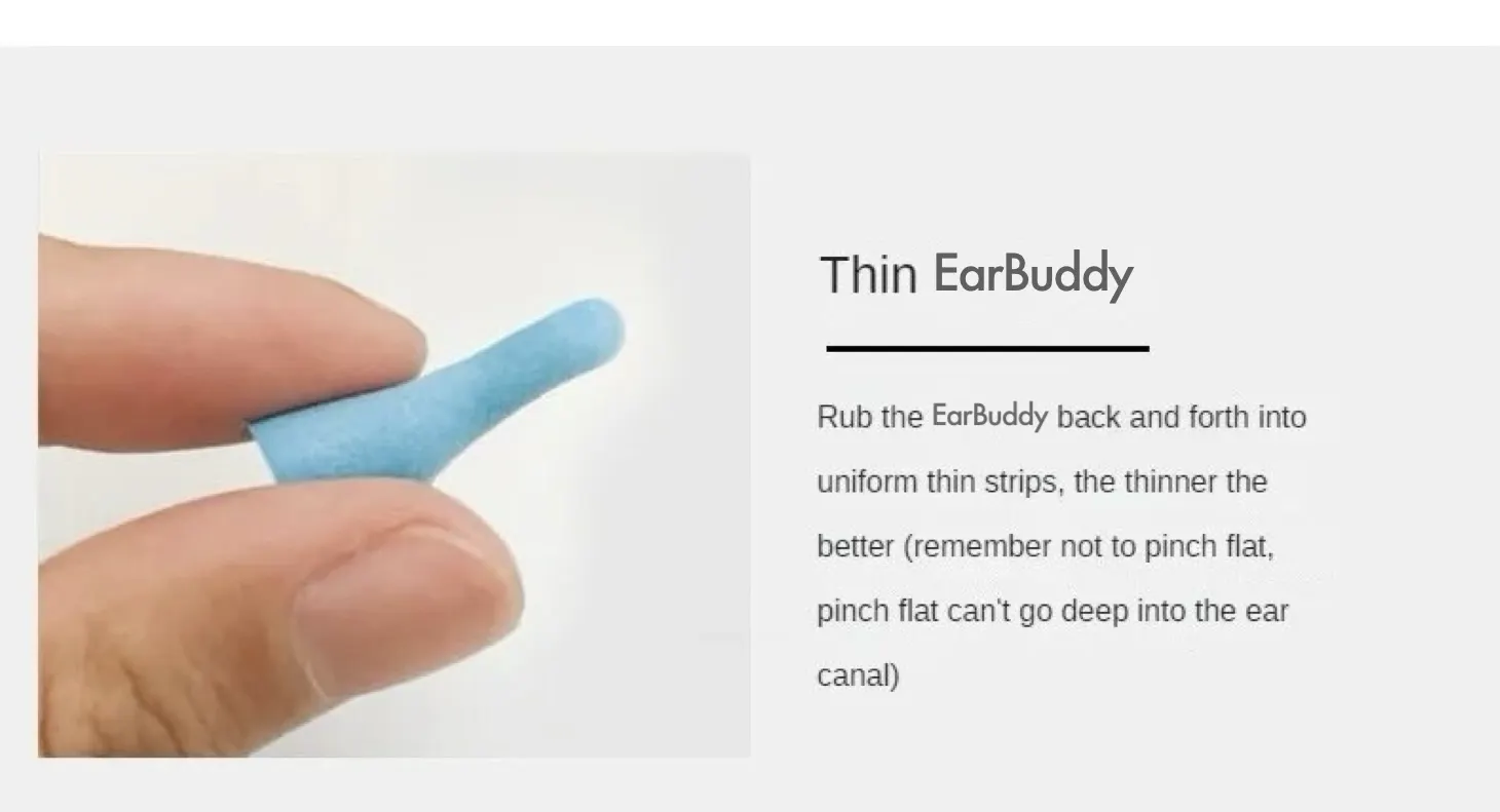 安価なスポンジ耳栓は素材がスカスカで、シリコン耳栓は形が決まっているため外れやすいです。一方EarBuddyは、指で潰したあと元の形に戻るまでのリバウンドタイムが約60秒。この高密性と、日本人の耳に合わせて設計された人間工学デザインで、あなたの耳の形に沿ってぴったりとフィットし、騒音をブロックします。