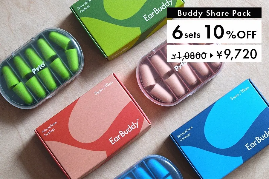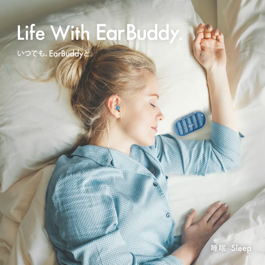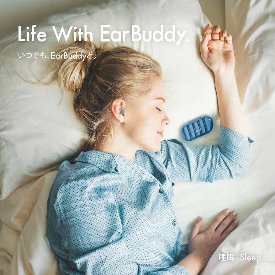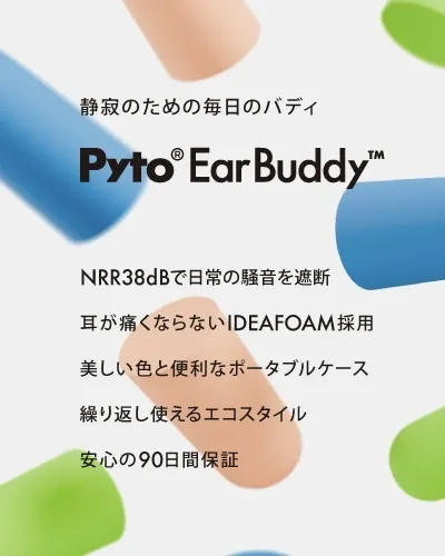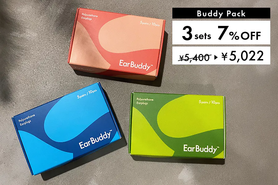 EarBuddy™(イヤーバディ)は、非常にやわらかく軽量な高吸音性素材を採用した、特殊構造のポリウレタンフォーム耳栓です。従来の耳栓の「遮音性が物足りない」「耳が痛くなる」「見た目が安っぽい」といった印象を180度変えます。