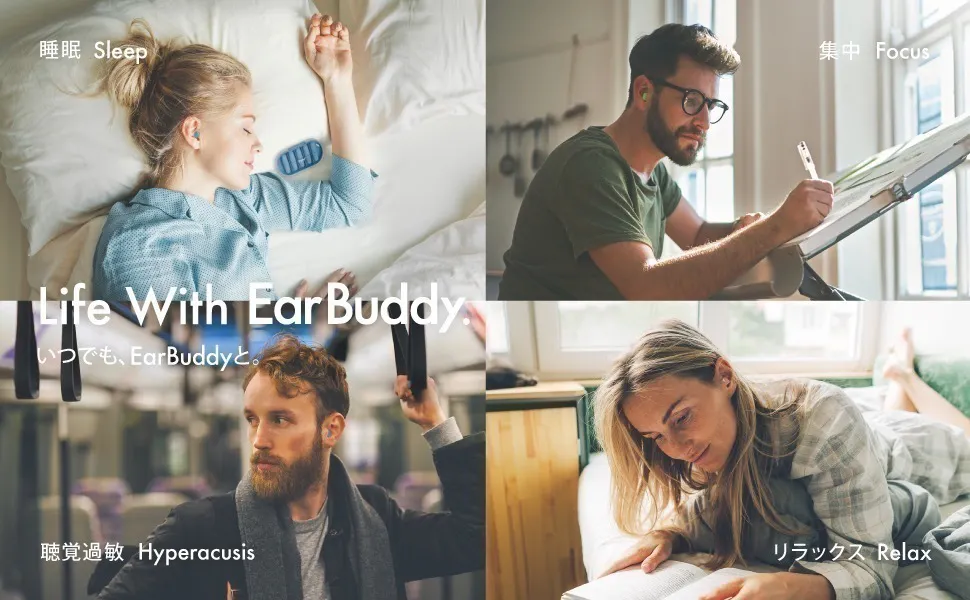EarBuddyは、眠りたい夜も、集中したい日も、人混みのストレスから逃れたい瞬間も。「生活のすぐ隣」にそっと寄り添う、毎日を頑張るあなたのためのバディです。