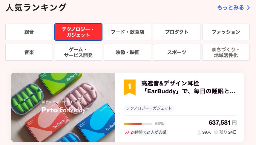 CAMPFIRE テクノロジー・ガジェット人気ランキング 1位復活!!