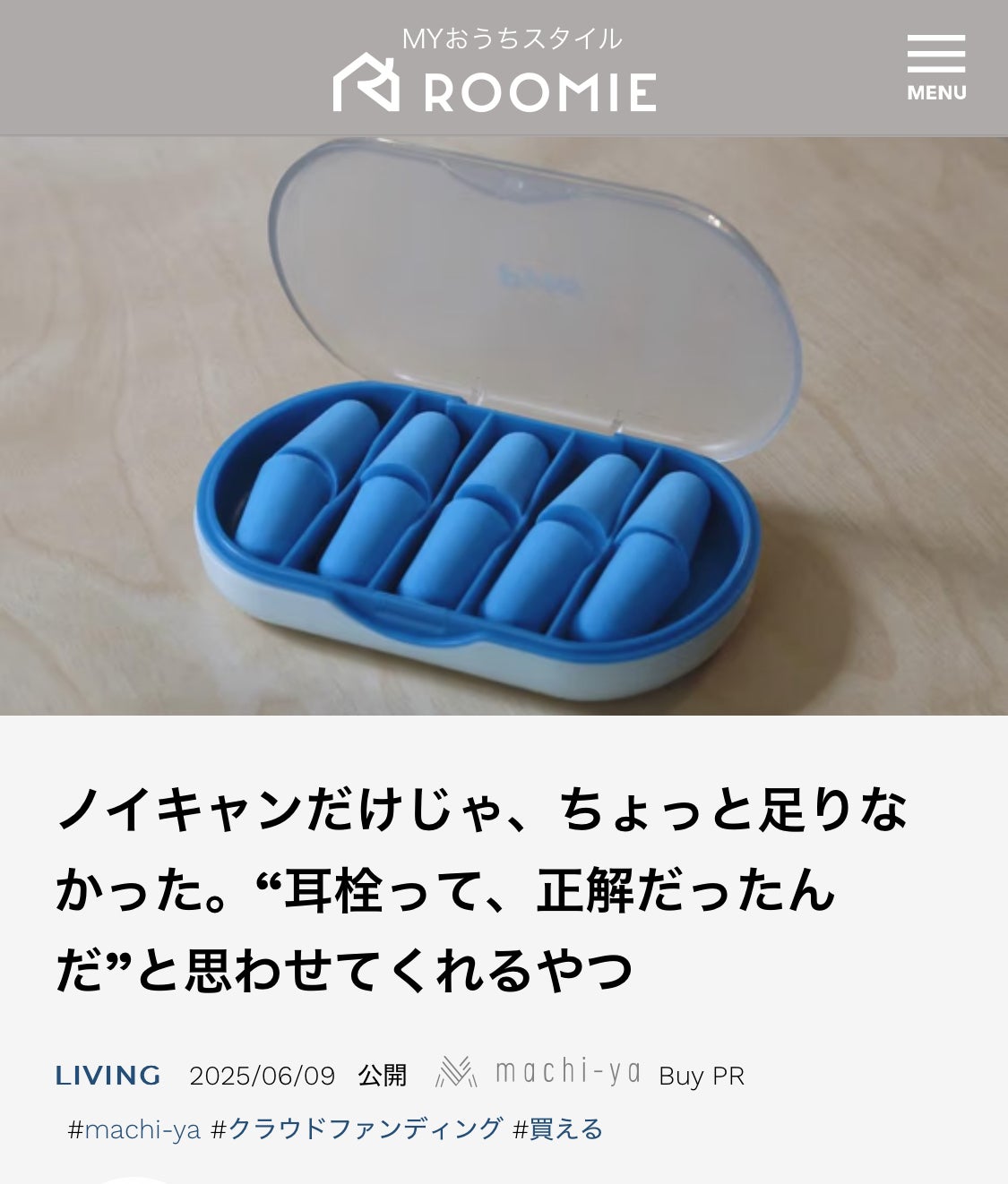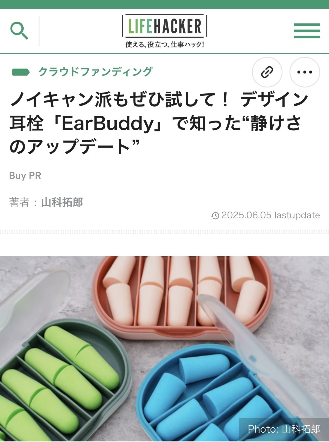 おはようございます!Pyto代表の直林です。今日の関東はあいにくの雨模様です。さて、月間1600万+PVのライフスタイルウェブメディア「ROOMIE(ルーミー)」にて、PytoのEarBuddyが紹介されました!ROOMIEは「同居人」を表すカジュアルな言葉で、"自分らしさ"を大切にした毎日を送りたい人に向けたプロダクトやインテリアを紹介する、ライフスタイル系メディアです。「"耳栓って、正解だったんだ"と思わせてくれるやつ」という少し可愛いタイトルで、EarBuddyの高い遮音性や使いやすさについてご紹介いただきました。そうです。EarBuddyは"小さくても頼りになるやつ"なんです。次回あたりからは、実際のEarBuddyの使用感なども活動報告でシェアしていければと思います!楽しみにしていてくださいね。それでは今日も一日、頑張りましょう!Pyto代表 直林ROOMIE掲載記事はこちら