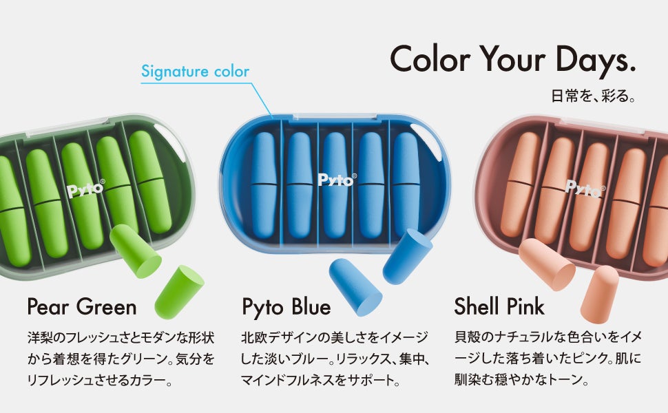 従来の耳栓は、オレンジや黄色などが一般的で、好みの色を選べませんでした。そもそも、『耳栓の色を選ぶ』という発想すら、あまり無かったかもしれません。