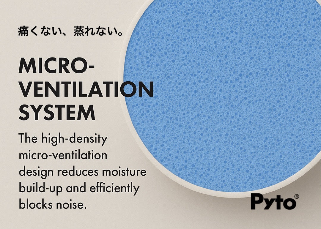 EarBuddyは、高密度のマイクロベンチレーション設計を採用。本体内部に微細な空間を無数に設けることで、空気や熱を効率よく逃がし、蒸れやかゆみを防ぎます。これにより、長時間使っても快適な付け心地が続きます。