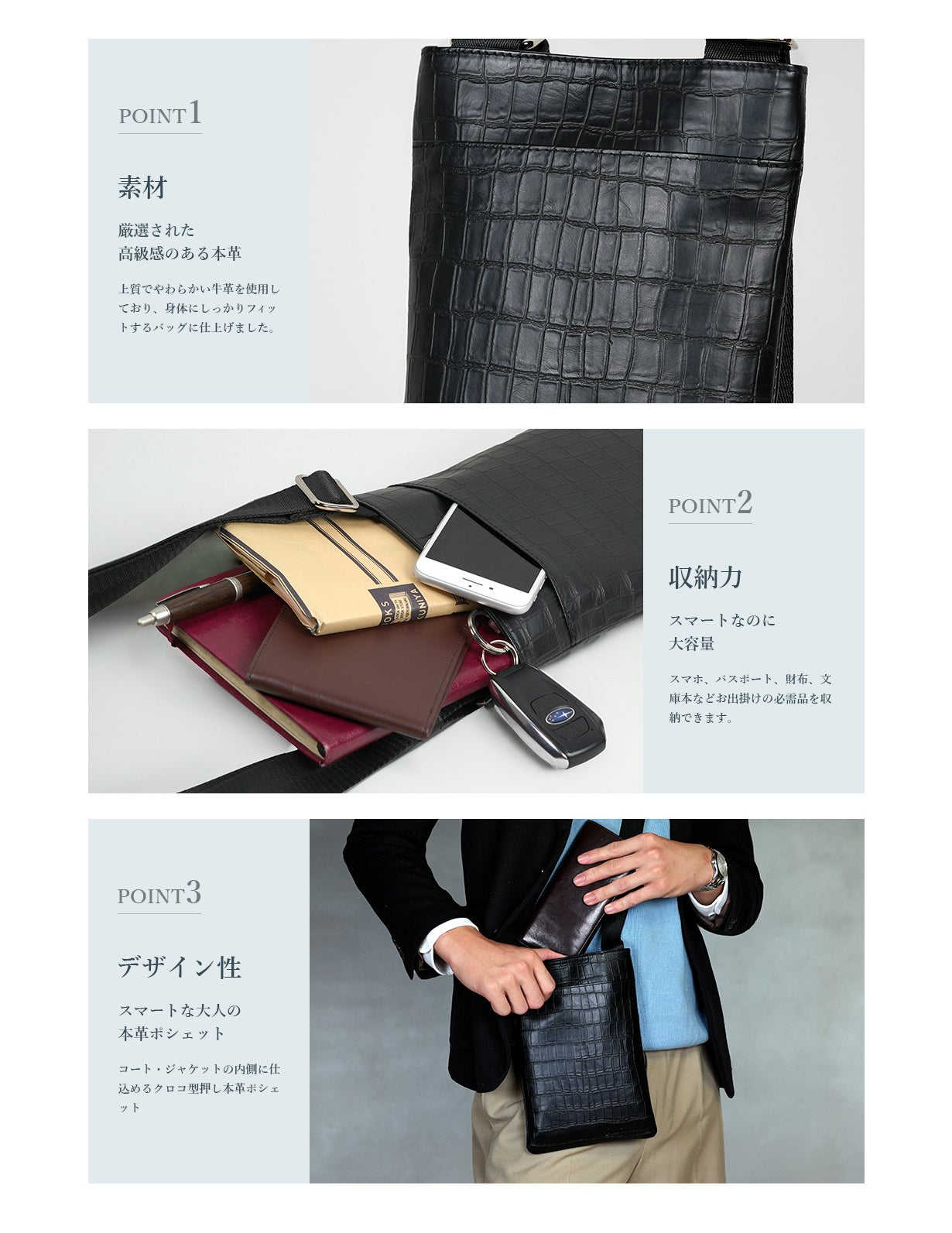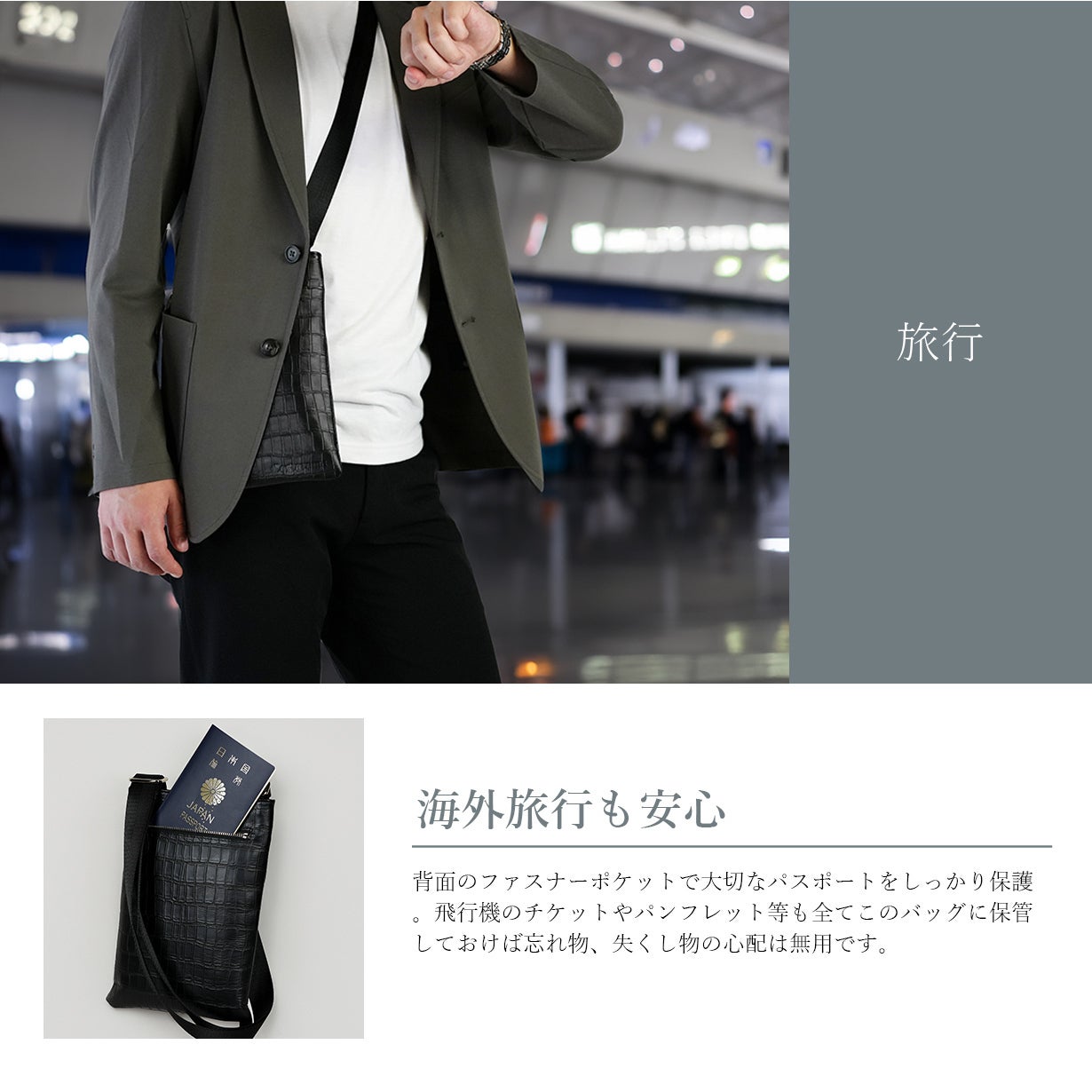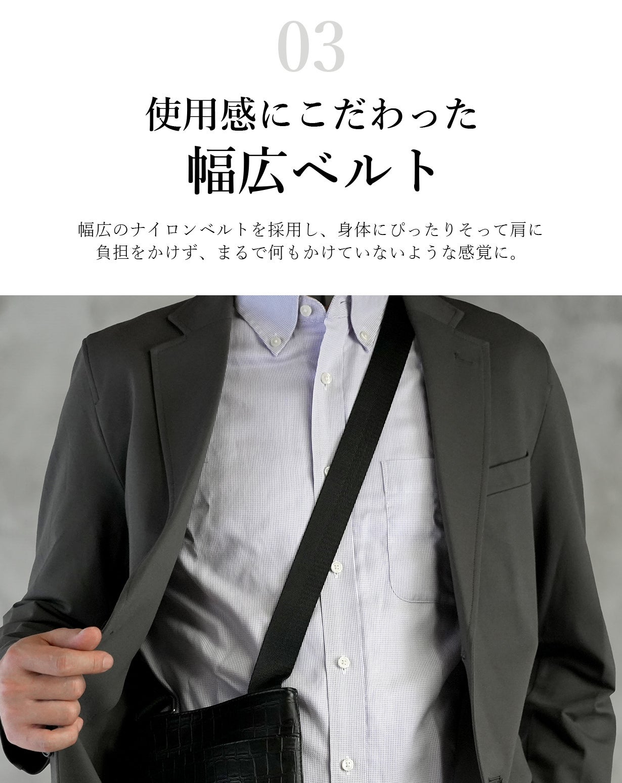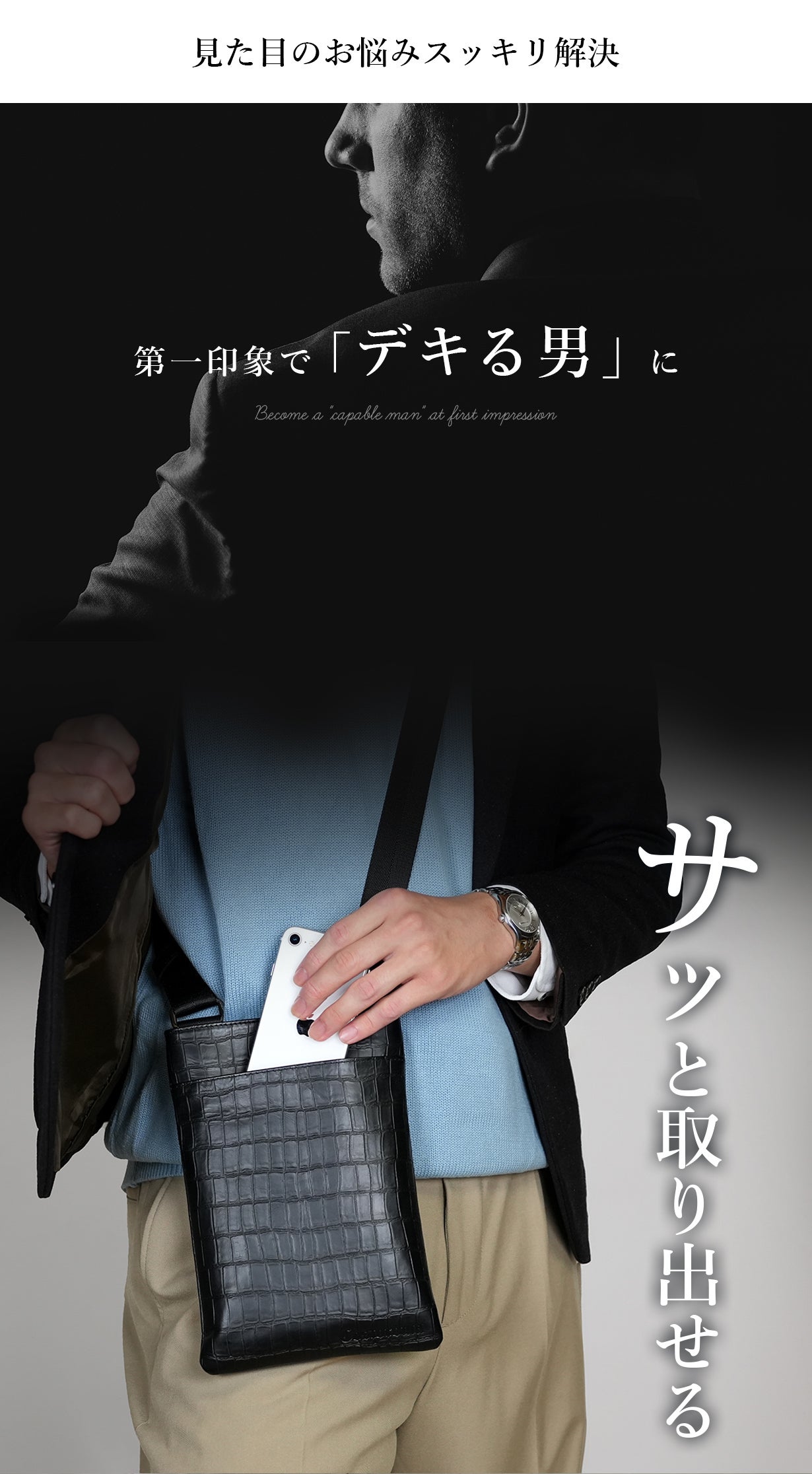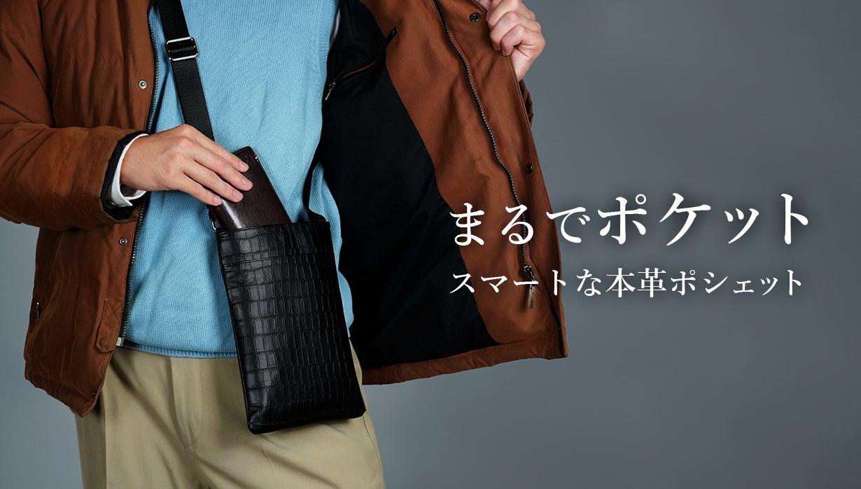 「冬のダウンジャケットを着るとバッグが邪魔」「手ぶらがいいけど着崩れするから上着やパンツに財布を入れたくない」「パンツポケットに財布を入れていると気づけば落としてしまう」「旅行で貴重品だけ入る小さいメンズバッグが欲しい」・・・そんなお声を元に企画しました。