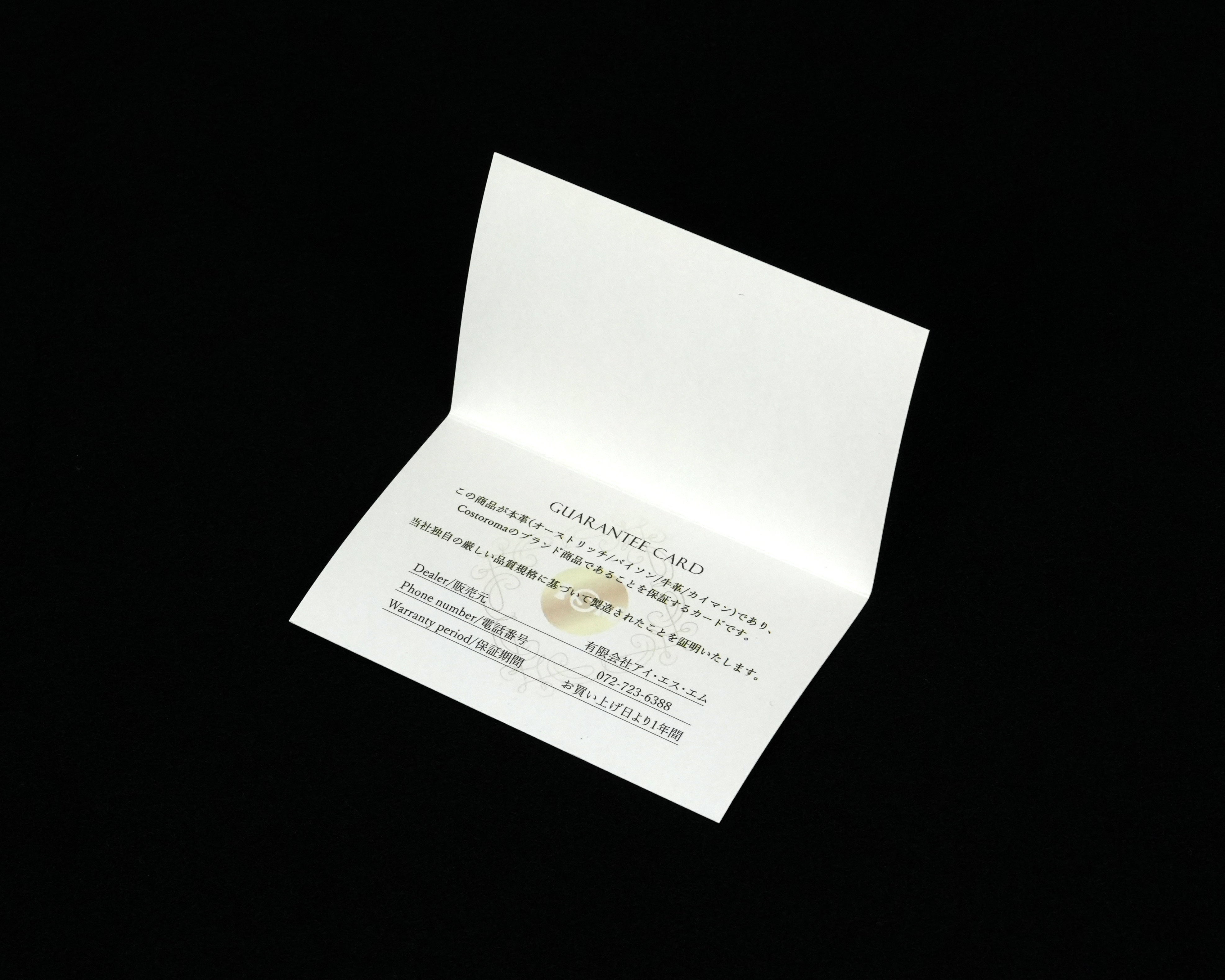 上記は1年保証のギャランティ・カードとなっており、ブランド全商品に導入しております。