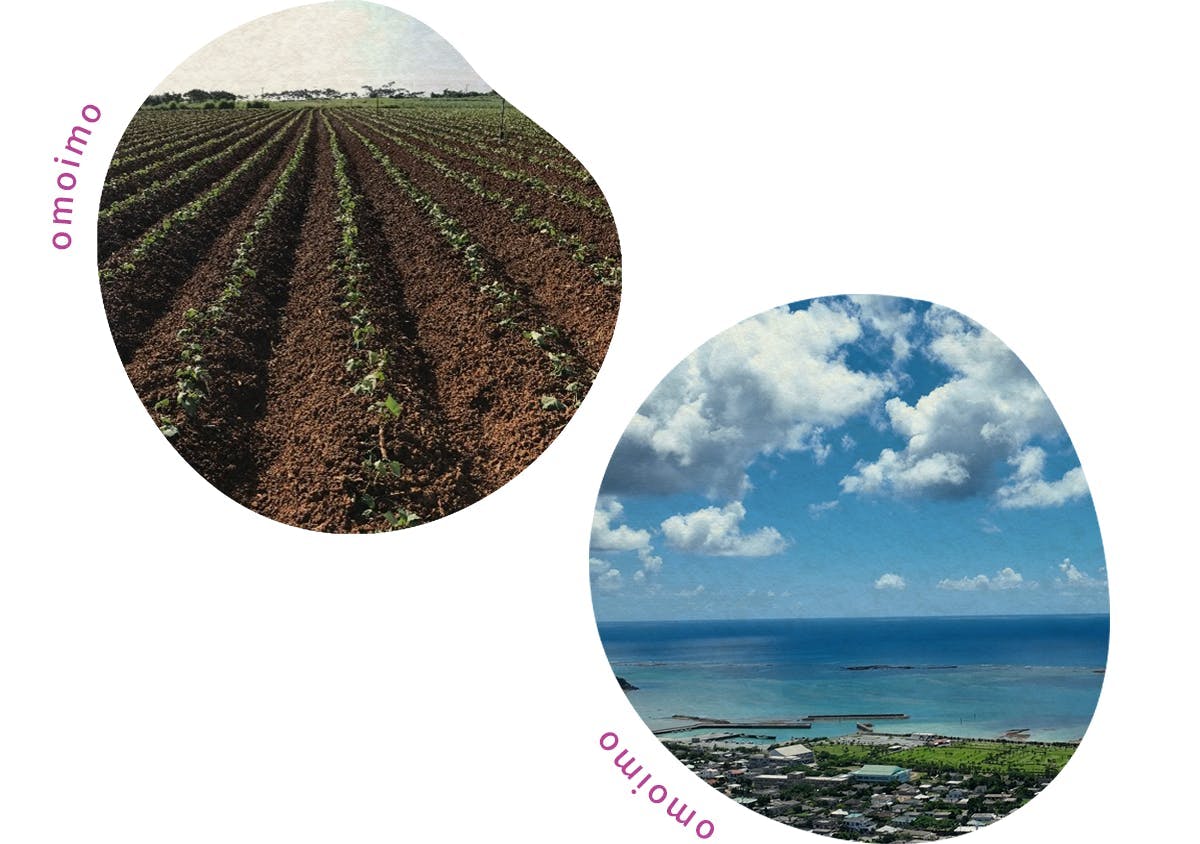 那覇から西に100km、飛行機で30分の距離に位置する久米島は紅芋の拠点産地。かつてアリモドキゾウムシという病害虫の根絶が世界で初めて確認され、紅芋生産を牽引してきた久米島。水はけの良い土壌は紅芋栽培にも適した土地です。手間や費用をかけてつくったいい土ほど粒子が細かく、雨で海へ流されてしまい赤土流出という環境問題へと繋がってしまう為、久米島町では農地に防止板の設置やグリーンベルトの植栽を行う等で流出防止対策にも力を入れています。紅芋拠点産地としても沖縄の綺麗な海や珊瑚礁をを守る工夫をしています。