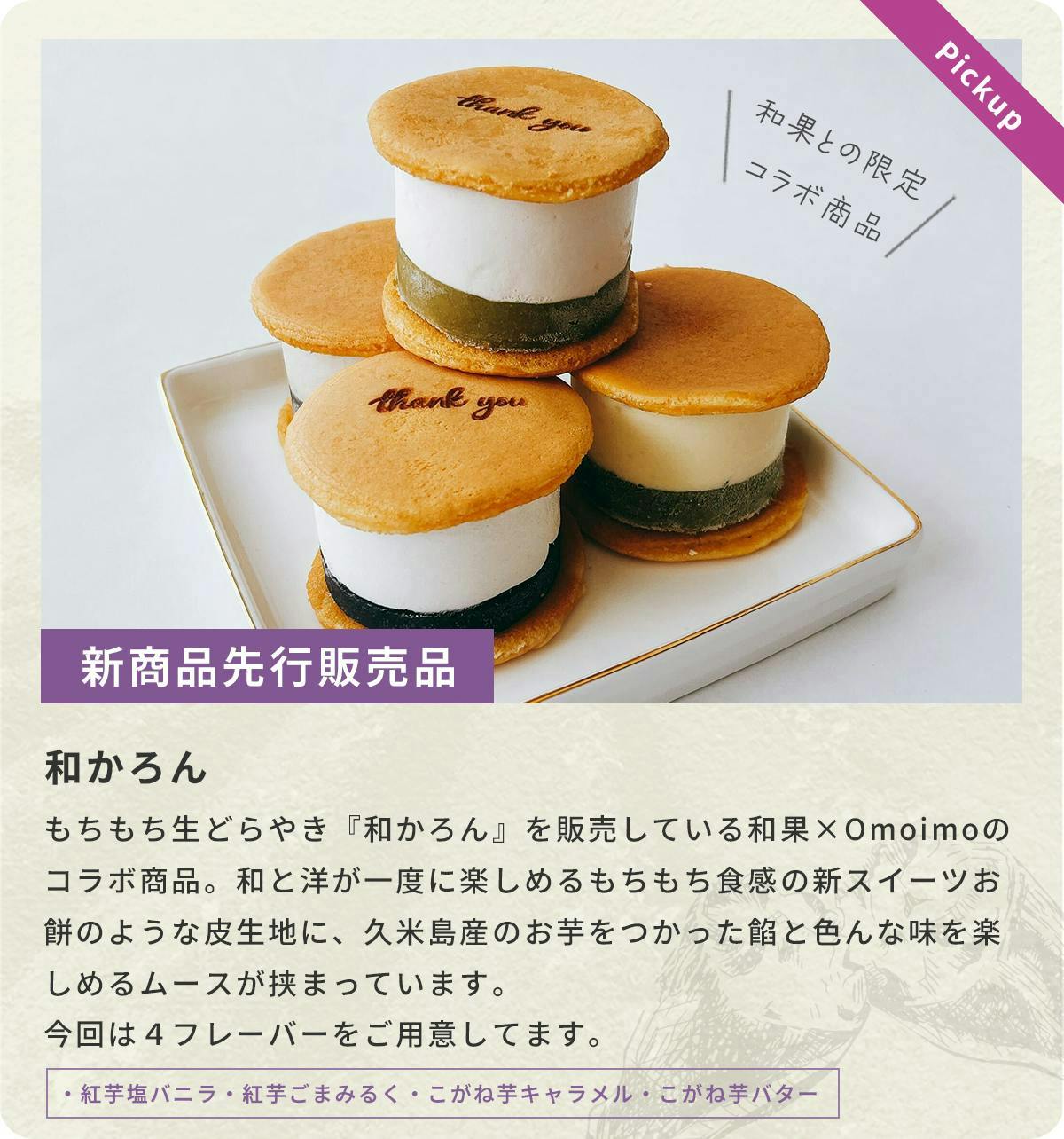 私たちが取り扱っている紅芋は《沖夢紫》という品種で、紅芋の中でも栽培が難しく生産量が限られている希少な品種です。沖夢紫は、他の紅芋と比べてもお芋そのものに甘さがあり、サツマイモとひけを取らないほど糖度があります。Omoimo では、そんな希少な沖夢紫をそのまま味わえる焼き芋や干し芋にしています。焼き芋や干し芋といえば黄色いサツマイモを連想する方が多いと思いますが、沖縄でも紅芋の焼き芋や干し芋はめずらしく、ありそうでなかった一品です。他にも、人気スイーツ店とコラボした限定紅芋スイーツにも沖夢紫を使用しています。