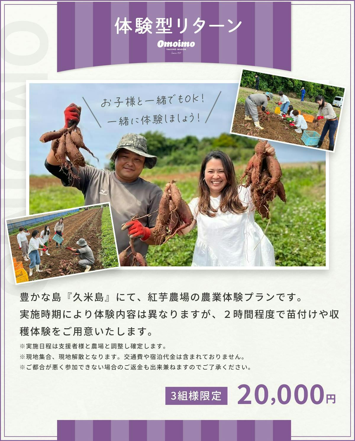 私たちのプロジェクトページを最後までご覧いただきありがとうございます。本プロジェクトでは、一人でも多くの方に紅芋を知ってもらい、食べてもらう事で、紅芋のファンになっていただき、紅芋農家さんへの支援と地域の発展に繋げていければと思っております。時折、Omoimo 宛に紅芋への想いをメッセージでいただくことがあり、温かいお言葉にいつも励まされています。この場をかりて感謝申し上げます。クラウドファンディングでは、ご支援を通じてより多くの方に活動について知っていただきながら、応援のお言葉をいただけると、大変励みになります。賛同していただける方のプロジェクトへのご支援、よろしくお願いいたします。