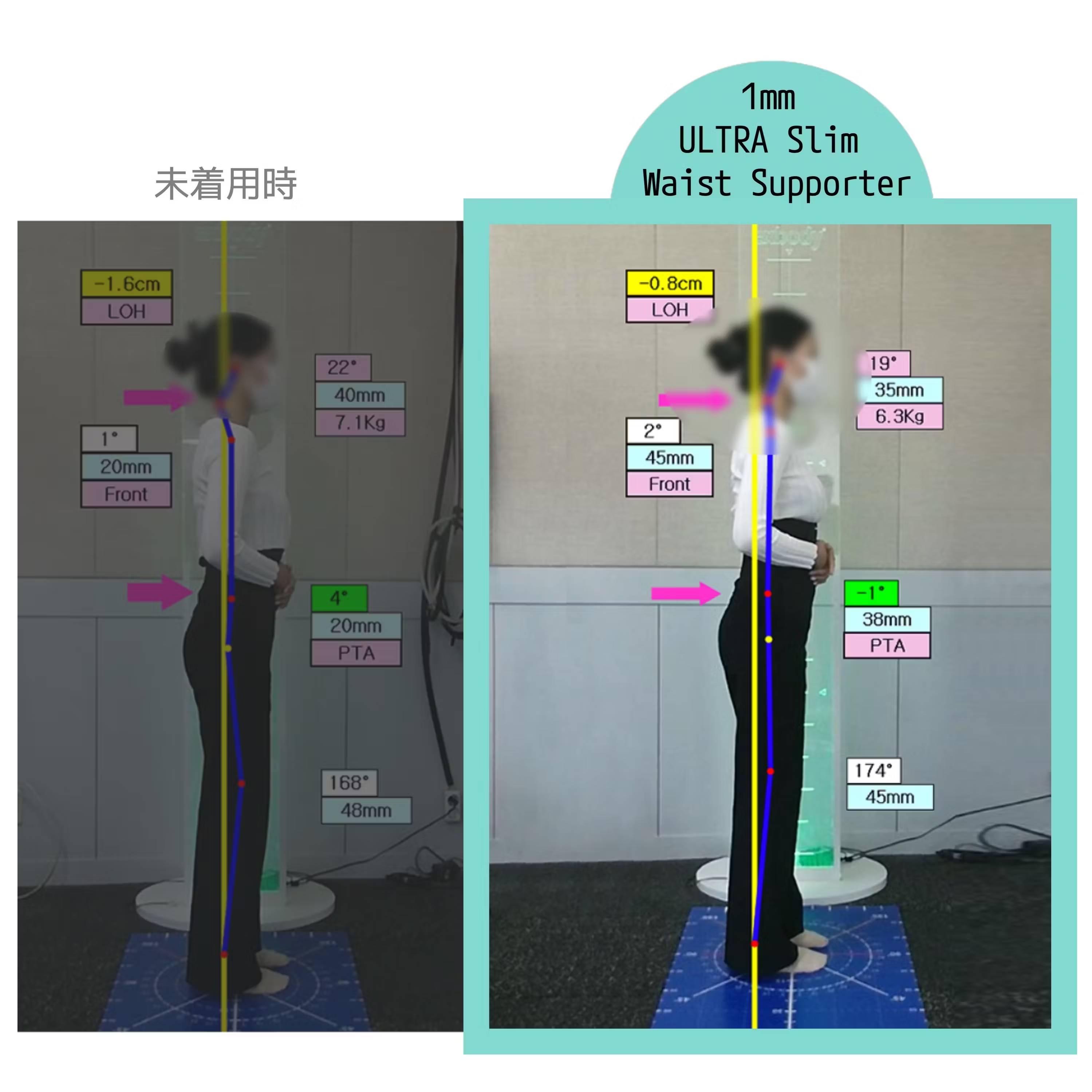 腰をしっかりサポートしつつも、邪魔にならない僅か1mmの薄さを実現しました。