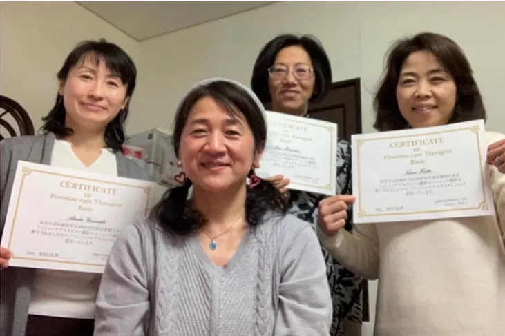 そしてもっと深く学びたくなり、「ちつのトリセツ」を指導、監修された、たつの ゆりこ先生にご指導いただきフェミニンケアセラピストになりました。