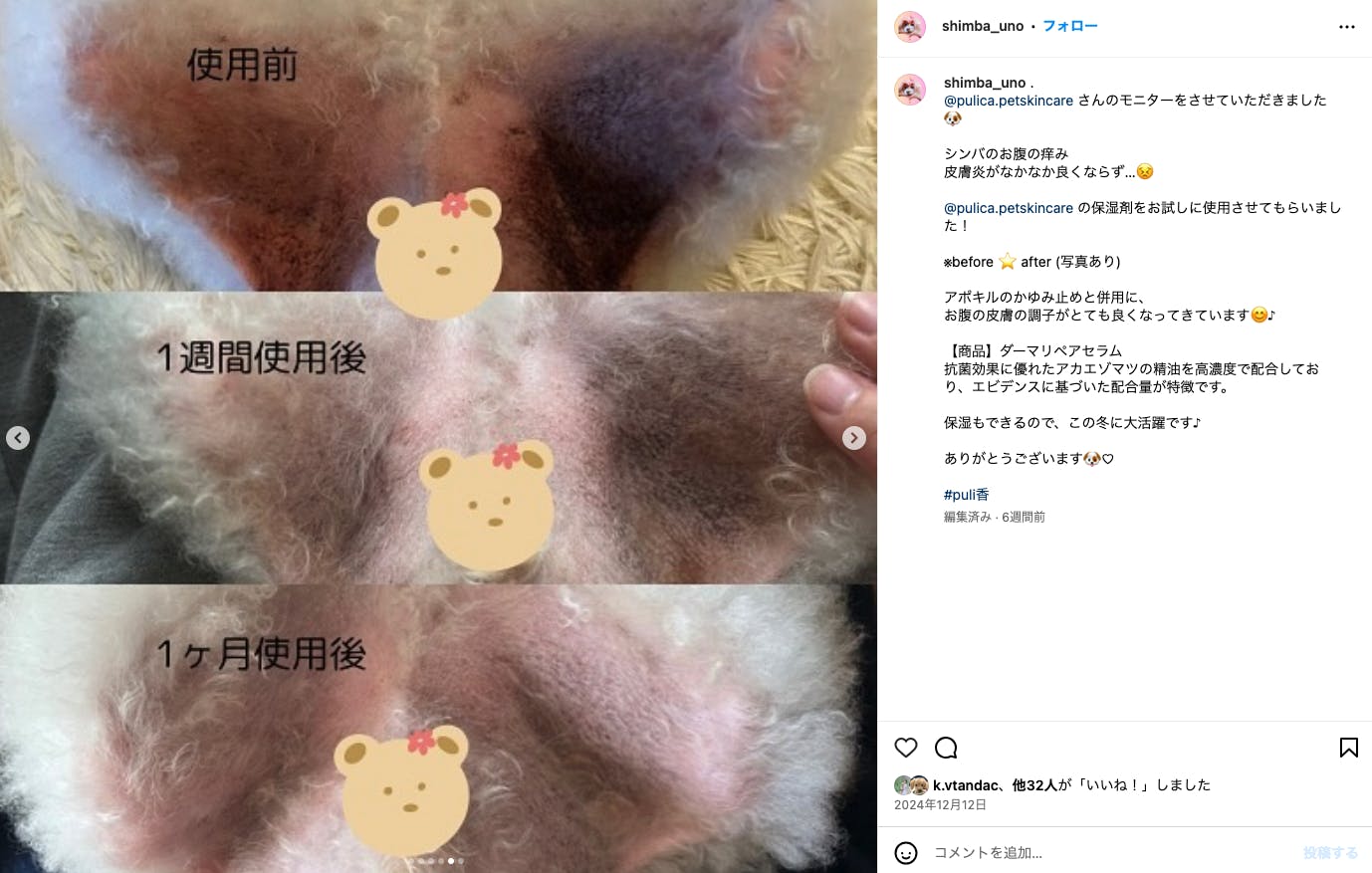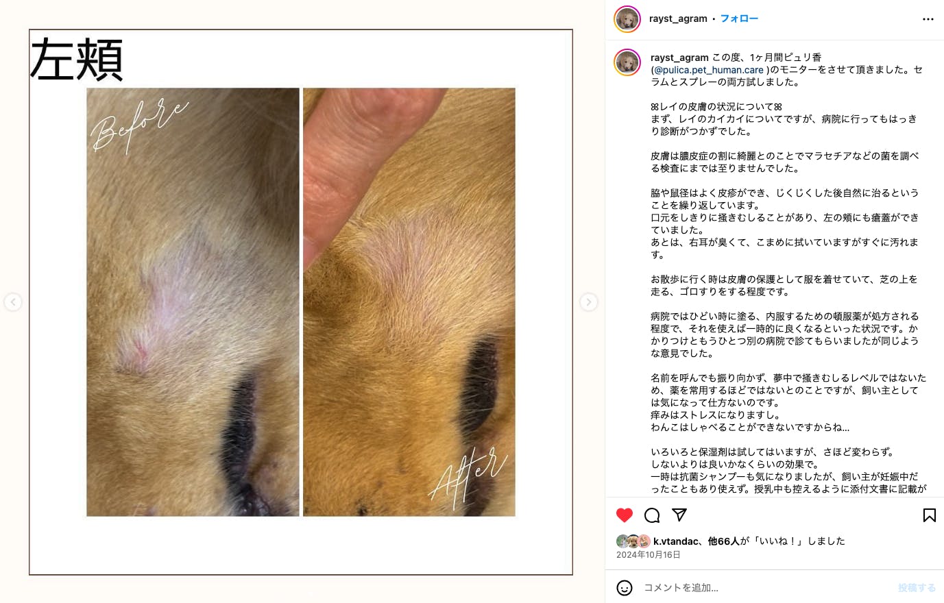 Puli香のスキンケア製品を使用したわんちゃんたちの写真をご紹介します。