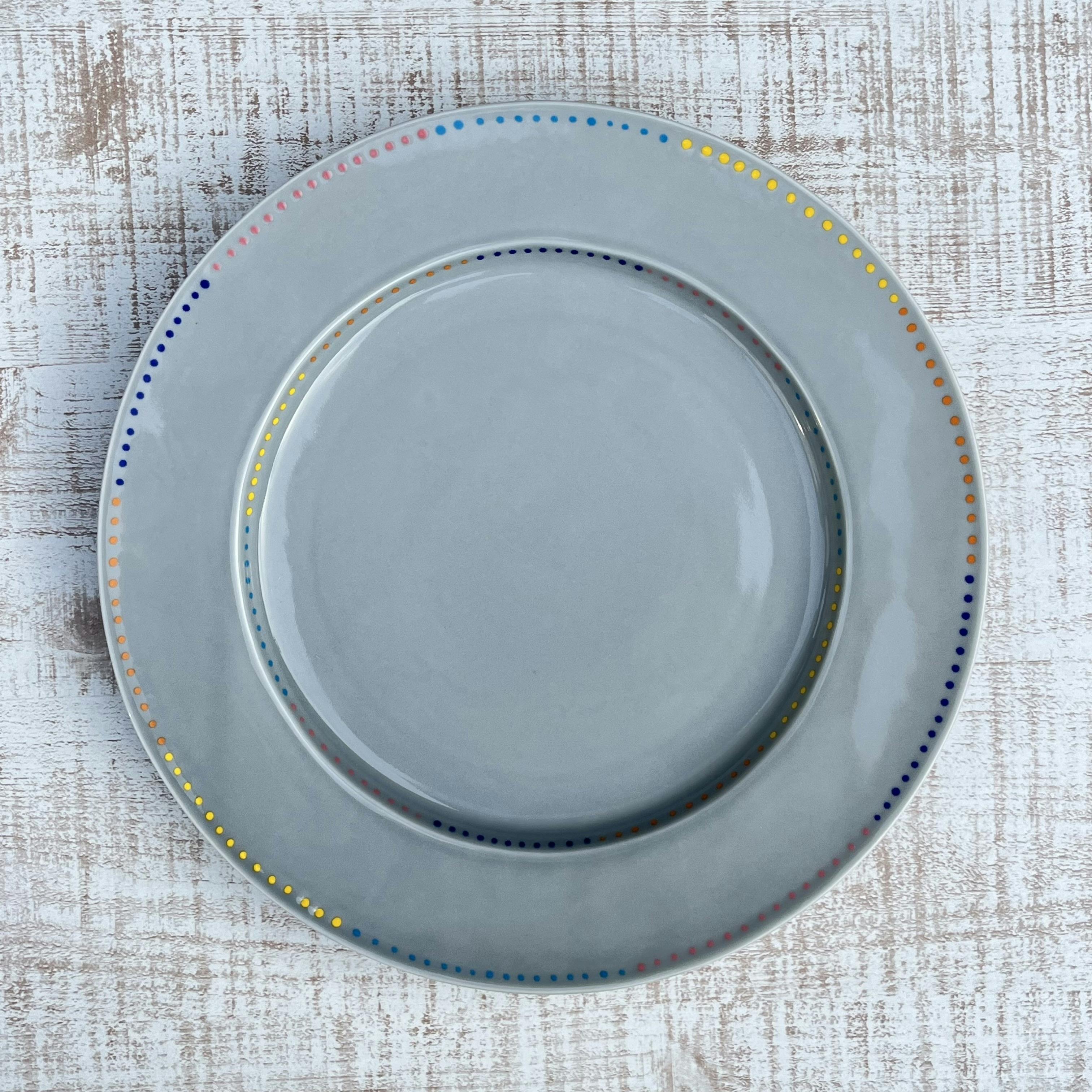 器の表面に描かれているドット柄に使われなくなった廃釉薬をイッチンの技法で活用したサスティナブルなオリジナル商品「Itchin 」を波佐見町内の人気窯元と共同開発しました。
