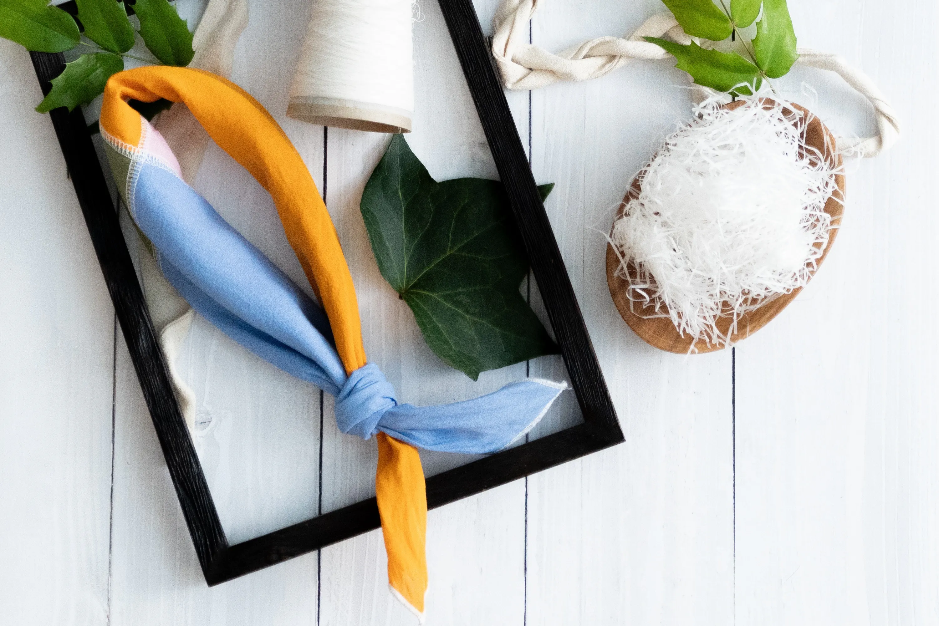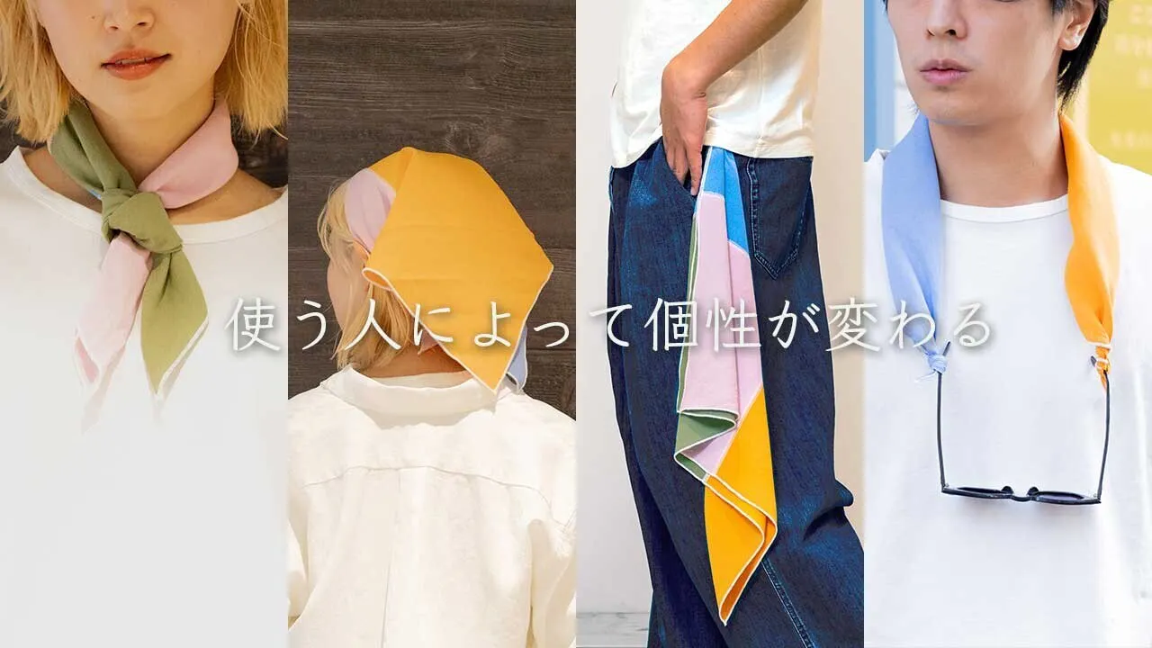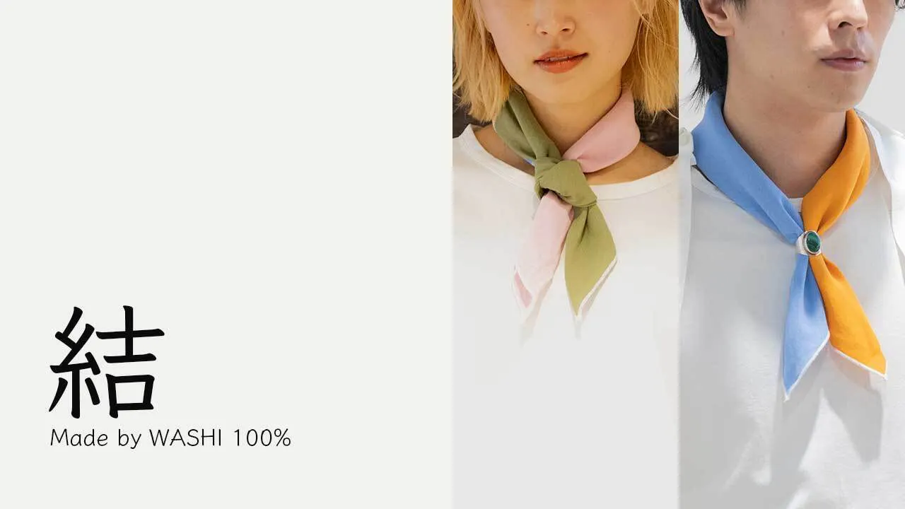 結(ゆい)は株式会社和興様が開発した和紙100%にこだわり、素材のチカラを最大限に引きだすため開発された『WASHI-TECH』との共同開発です。和興様は原材料の生産者から縫製職人まで、生産に関わる全ての人を思い、地球と心に負荷がかからない工程を模索し続けている会社様です。我々はそのアパレル業界が解決すべき社会的問題のひとつである、「負荷なく気持ちの良い労働環境」と「ストレスの無い作業で、すべての商品に純粋な生産者の思いが込められる」そんな心意気に強く共感しました。そして、和紙100%素材『WASHI-TECH』とのコラボレーションで4色バンダナ結(ゆい)が実現いたしました。