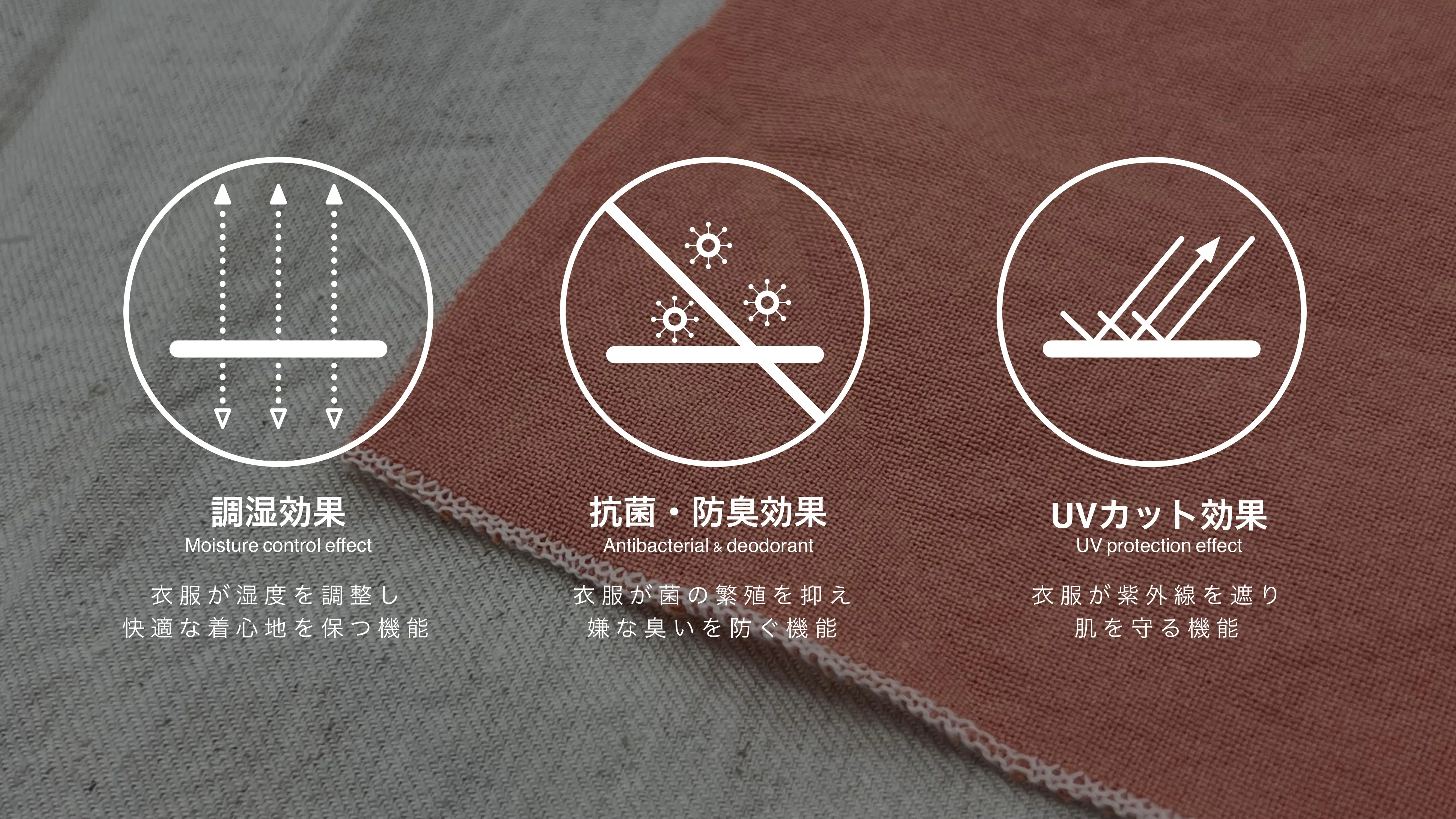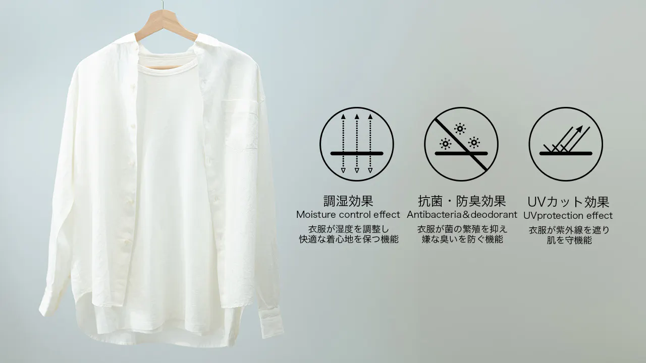 この快適性のポイントは天然由来の抗菌機能でニオイのもととなる菌の繁殖を抑えることです。過ごしにくいべたつく季節に湿気を吸収してドライな状態を保つ和紙のTシャツは、これからの日本の夏のマストハブアイテムとして広く認知されていきます。