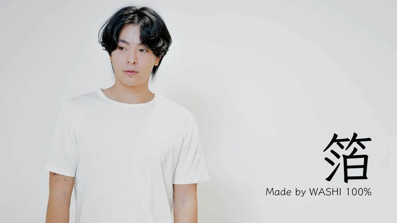 箔(はく)も、地球や人に優しい素材「和紙100%のWASHI-TECH』とのコラボレーションで開発した商品です。他の一般的なコットン素材のTシャツとは違い、しっとり、サラサラとした和紙ならではの独特な肌触りと最高の着心地を追従したTシャツです。