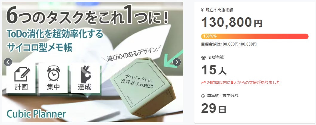 お陰様で、開始からに10万円の目標金額を100%達成することができました。