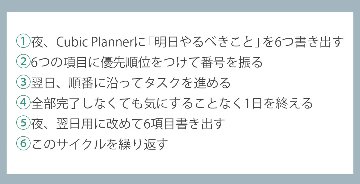 1~5の手順を日々のルーティンとして繰り返します。