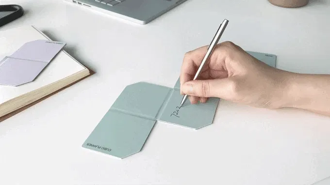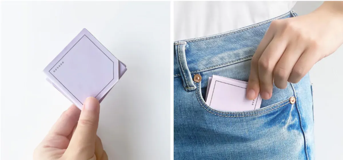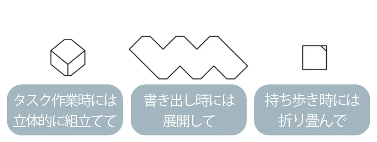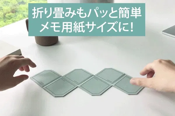 折りたたむと、付箋やメモ用紙のようにポケットやバッグに収まるサイズに。通勤や外出中、オフィスの移動時にもかさばることなく気軽に持ち歩けます。