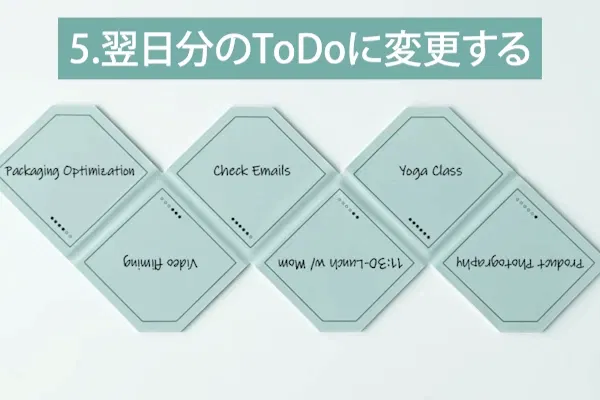 1日の終わりに、完了したタスクを消して、未完了のタスクがあればそれと共に翌日分の新しいタスクを追加します。