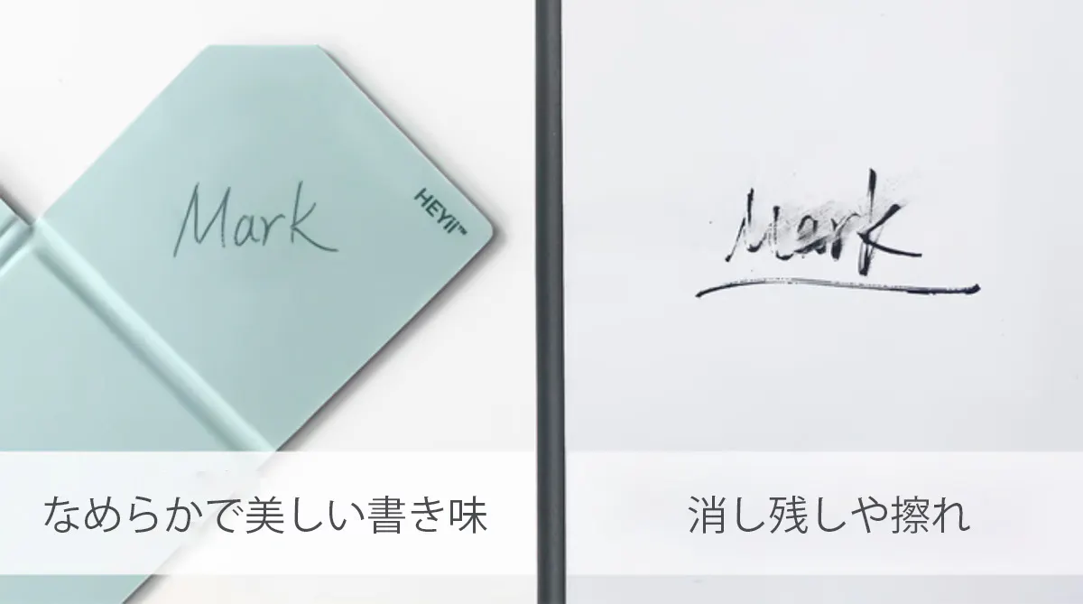 6か月にわたる綿密な研究開発の末に完成された独自のシリコンコーティングを使用。従来のホワイトボードによく見られる消し残しや擦れを防いでいます。また消しやすさだけでなく書き心地も備え、使いやすさも抜群!