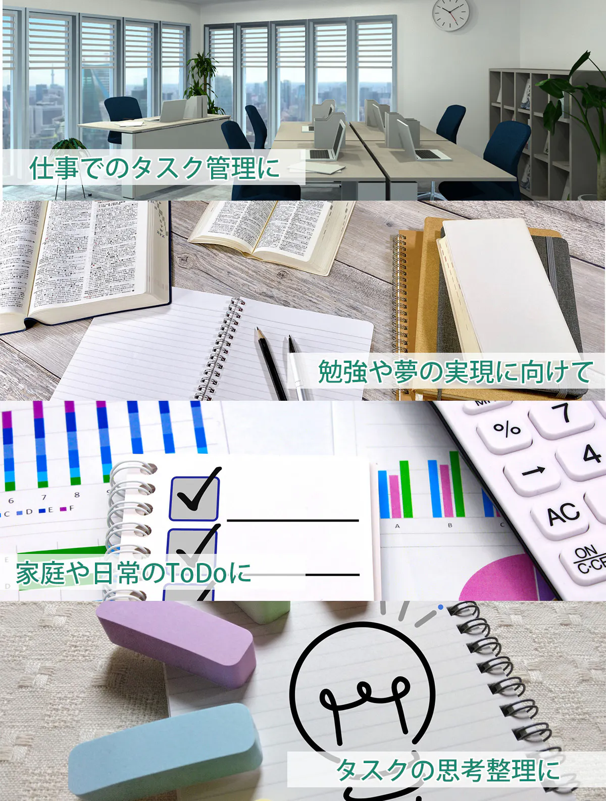 日々のタスク管理を一つ一つのステップに分解することで、単純化されて続けやすくなります。