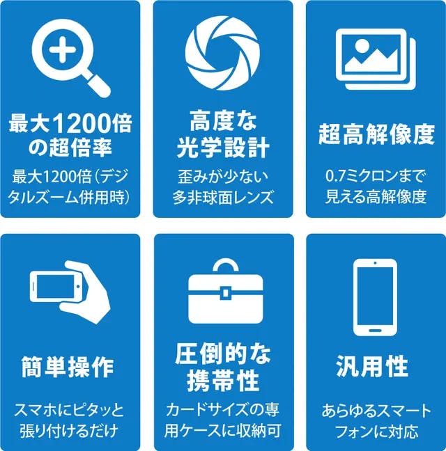 観察倍率はなんと最大1200倍。「スマホにここまでできるようになるのか!」と驚異を感じる革新的な顕微鏡レンズです。