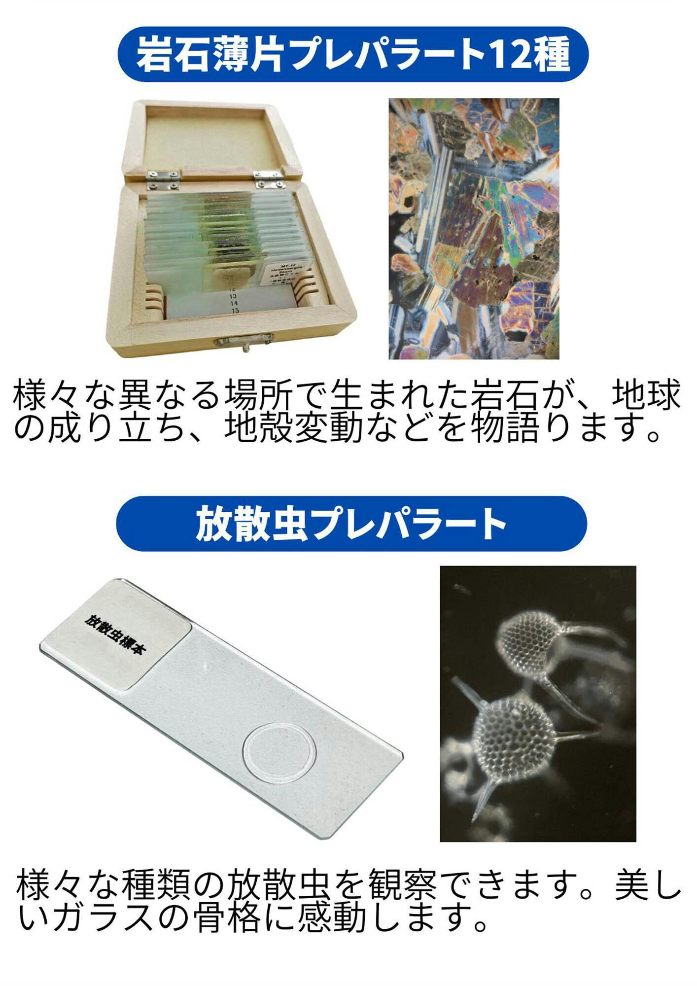 (※岩石薄片プレパラートと放散虫標本はリターンメニューにはございません。公式ショップよりお買い求めください。)
