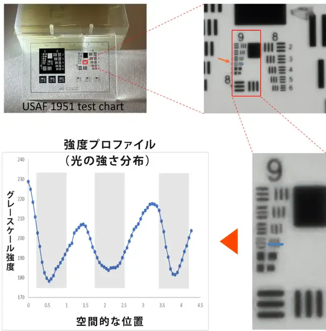 この光学性能試験からわかる通り、MH-X250 は卓上顕微鏡に匹敵する優れた光学性能を備えています。