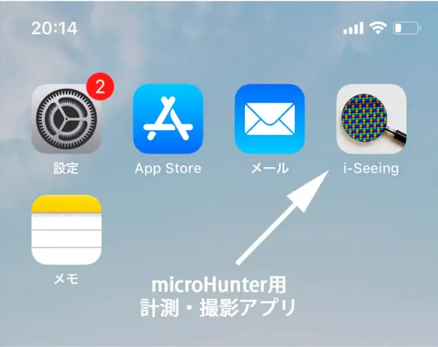 ミクロハンターレンズは、撮影中もライトをONにできるカメラアプリが入っていればどんなスマホでも使用可能です。記録として顕微鏡写真にスケールバーを表示させたい場合は、専用アプリの「i-Seeing」をダウンロードして下さい。専門家のニーズを満たす顕微鏡写真を撮影できるように設計されています。
