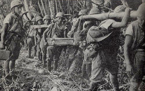 インパールへの山道を進軍する日本兵(パブリックドメイン)