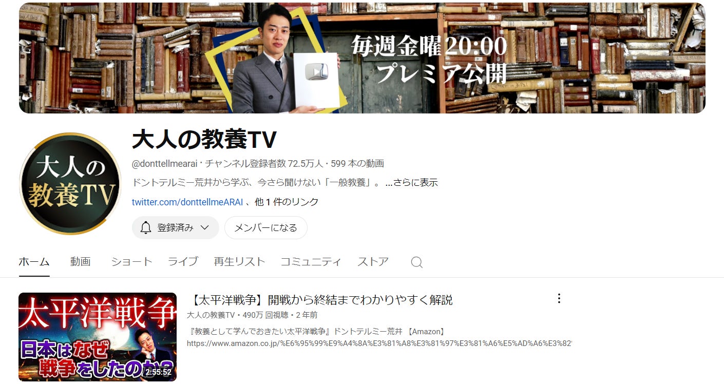 私は登録者72万人のYouTubeチャンネル『大人の教養TV』を運営しています!