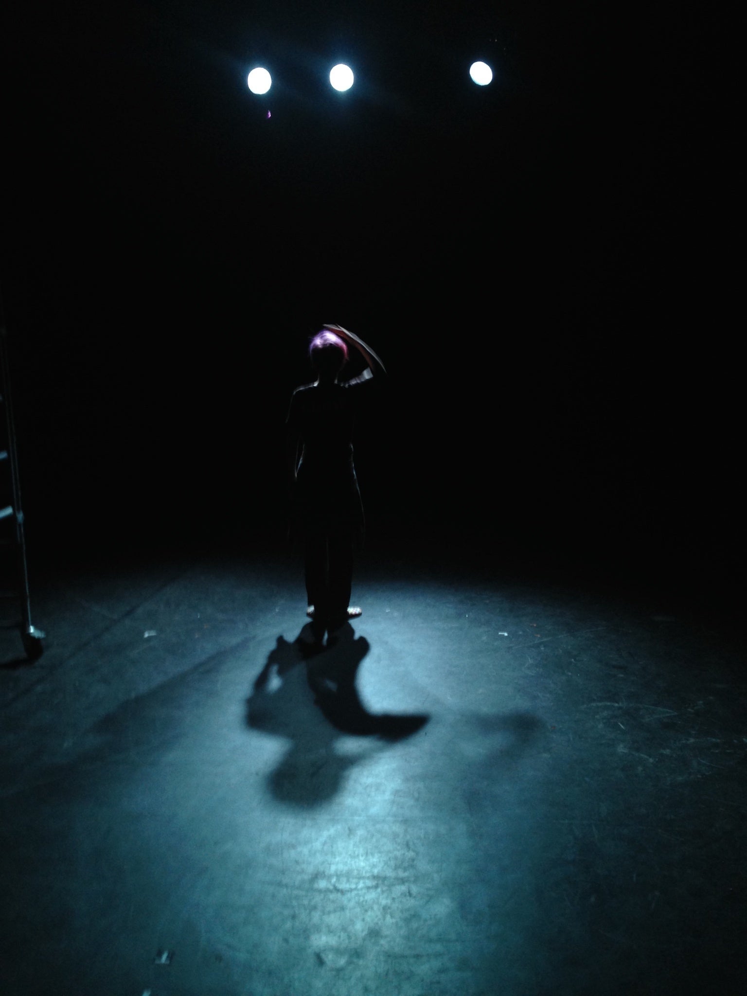 倉庫のような空間。ゆっくりと照明が暗くなってゆく。4メートル先の距離で、物が独りでに動き出し、突然消えたり現れたり。身体がバラバラに見えたり。