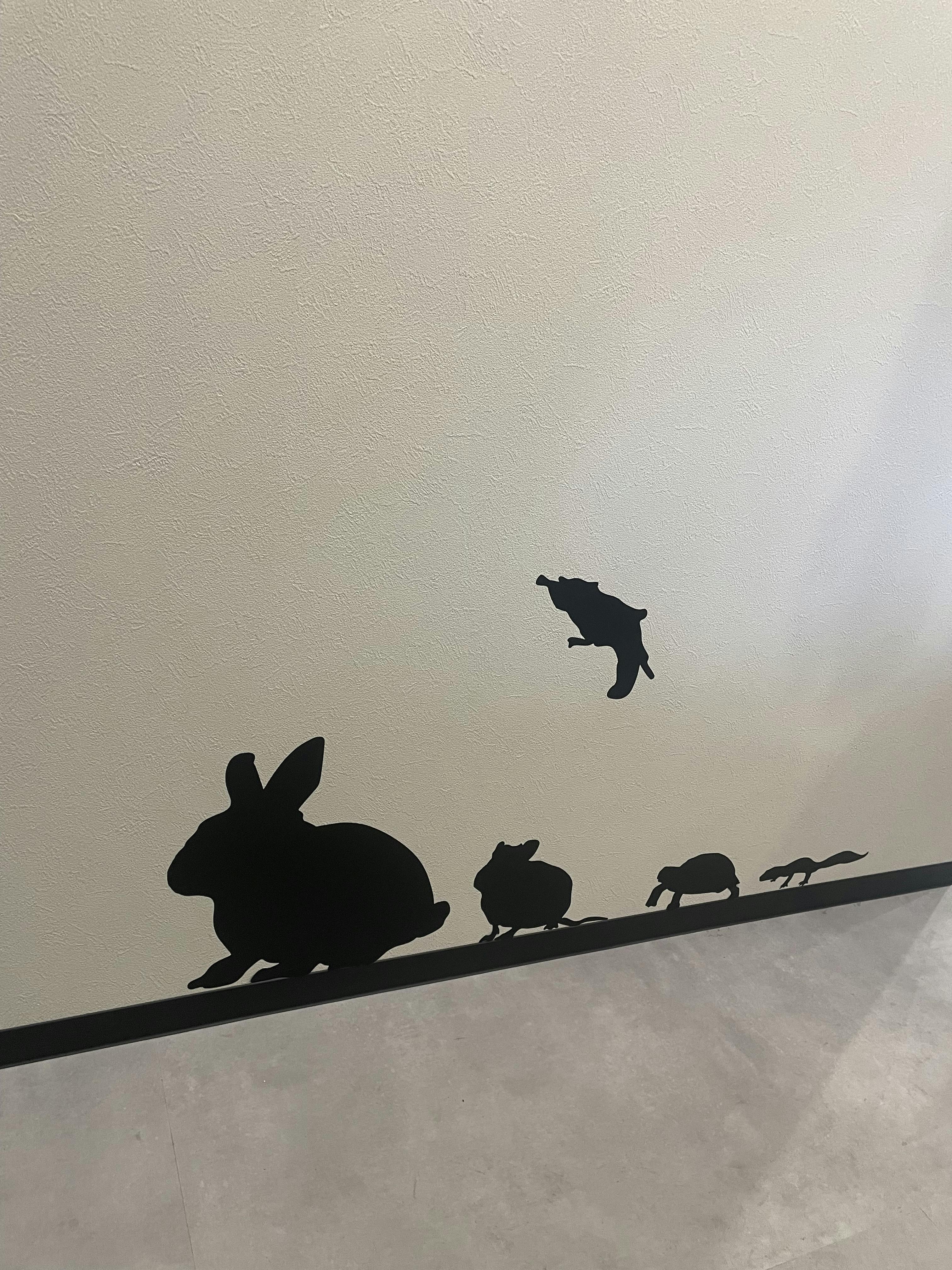 壁にはウサギ、デグー、カメ、トカゲ、フクロモモンガのシルエットがカッコイイです!
